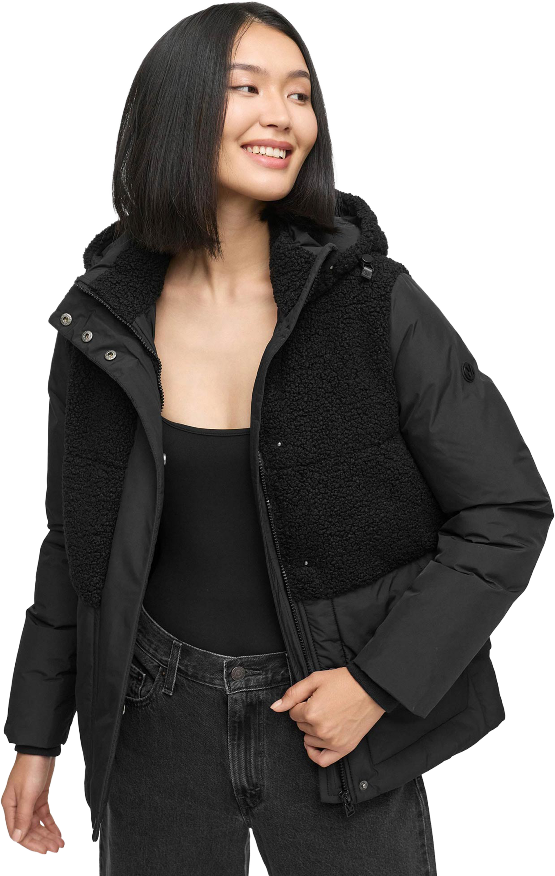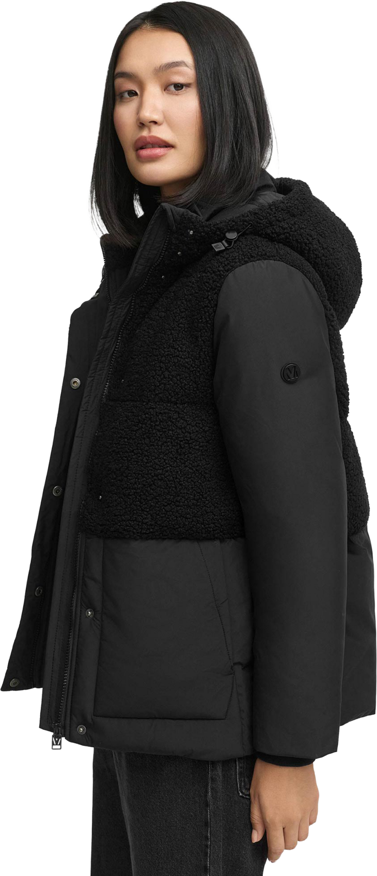 ● Современная зимняя куртка с мягким флисовым материалом в верхней части.