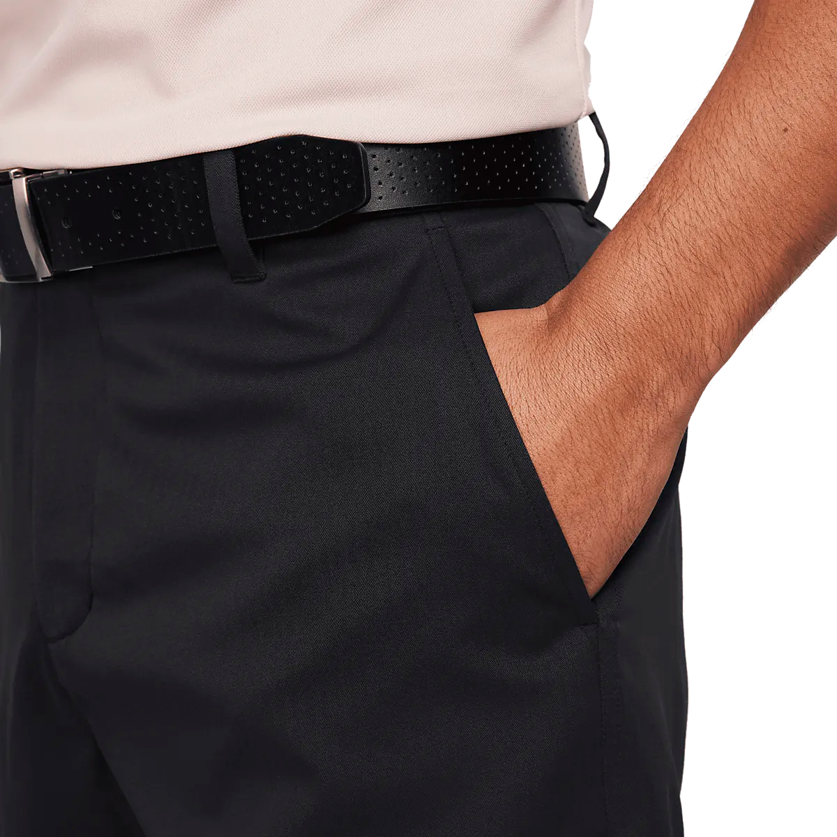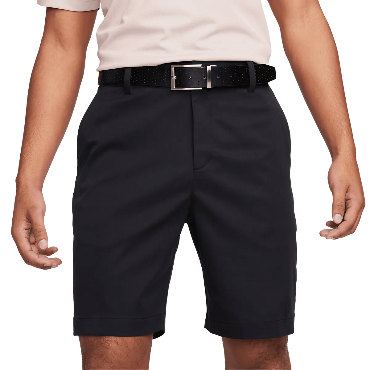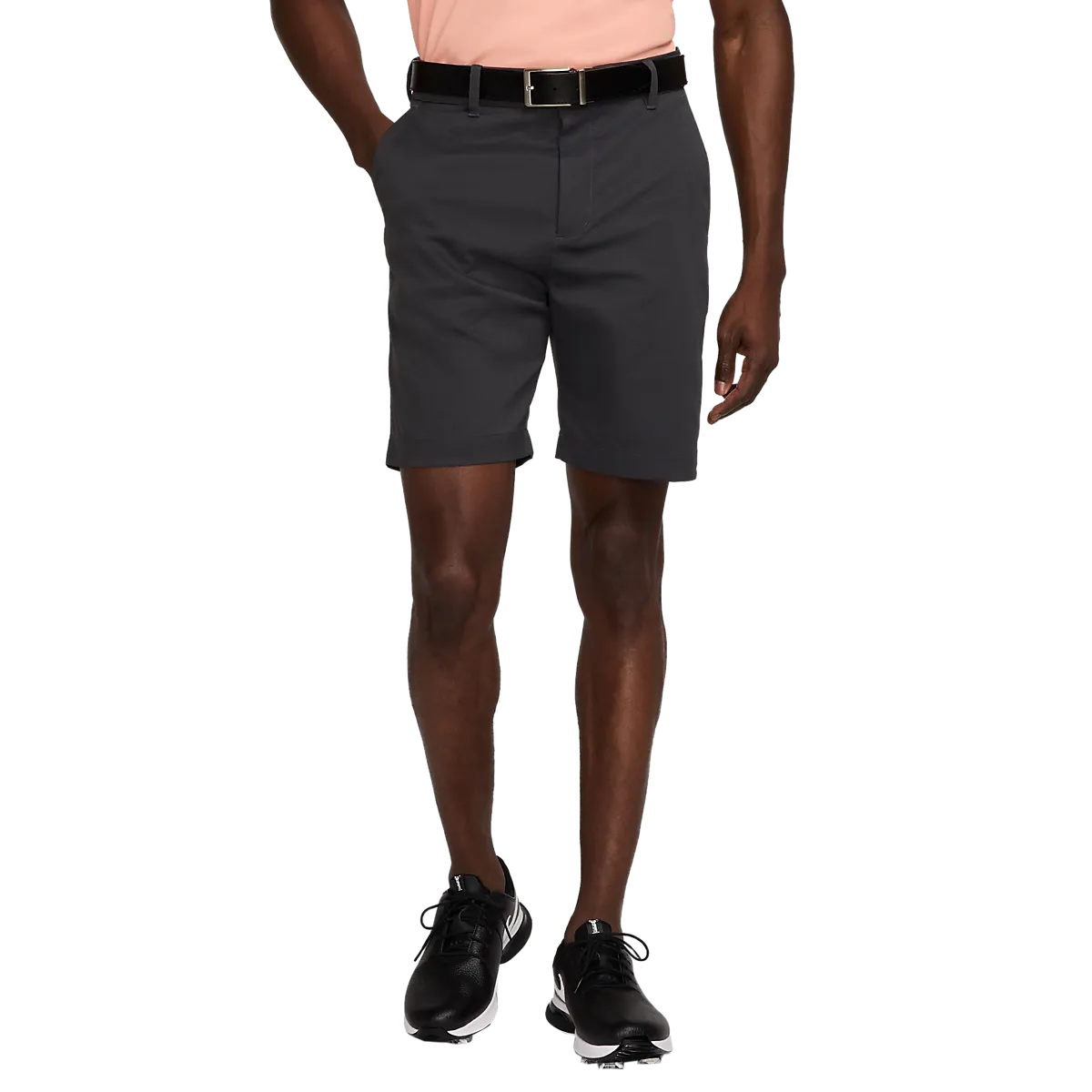 ● шорты для гольфа ● Мужские размеры ● Умная, оптимизированная модель ● Водоотталкивающий материал ● Немнущаяся, гибкая ткань с узором «елочка» на поверхности. ● Эластичный пояс с застежкой на крючок. ● Сетчатая подкладка в карманах ● Технология впитывания влаги Dri-FIT. ● 100% полиэстер Размеры: 30, 32, 36 | Цвета: Черный/Черный, Антрацит