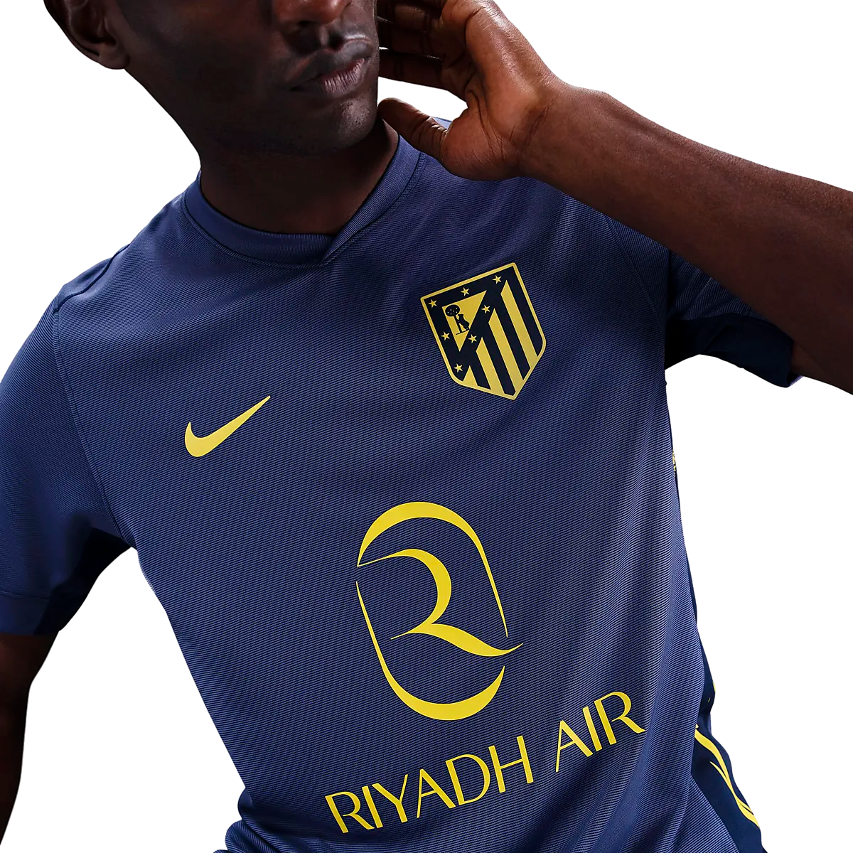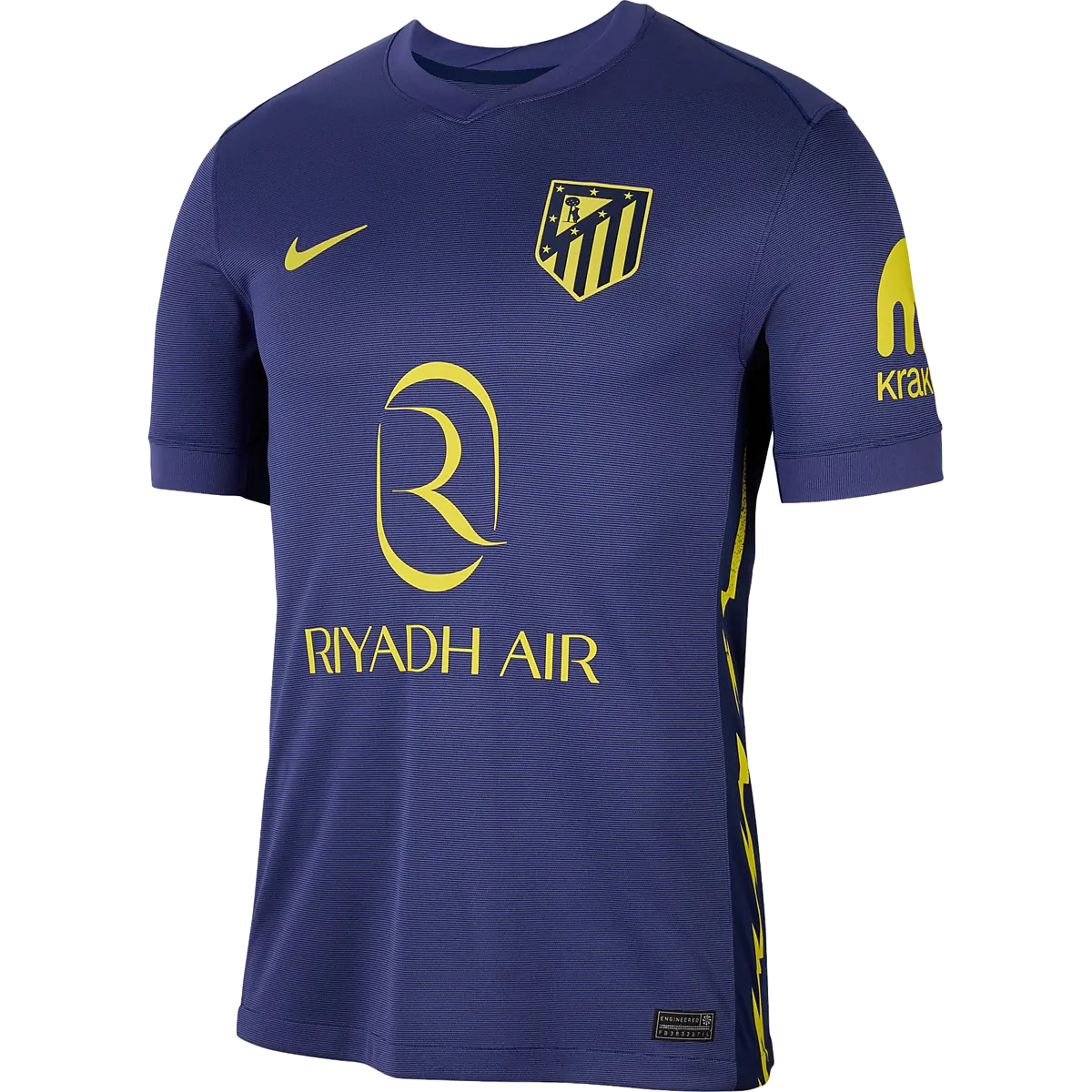● Футболка клубной команды ● Мужские размеры ● Влагоотводящие кроссовки Nike Dri-FIT. ● Реплика выездной футболки Атлетико Мадрид 2025-2026 гг. ● 100% полиэстер Размеры: S, M, L, XL | Цвета: Двоичный синий