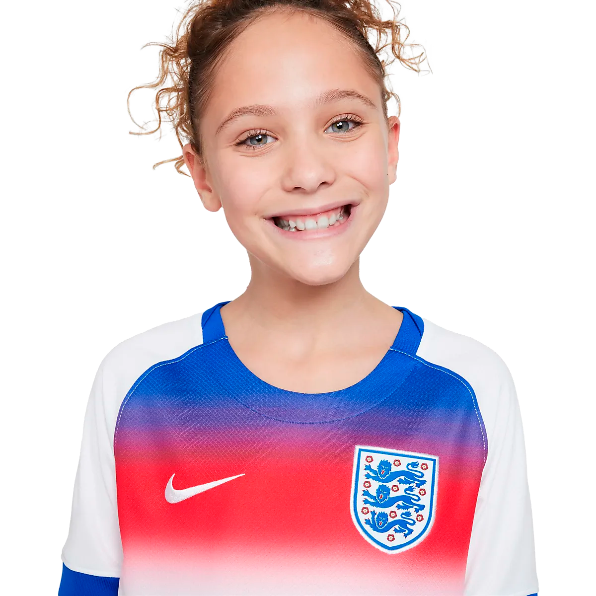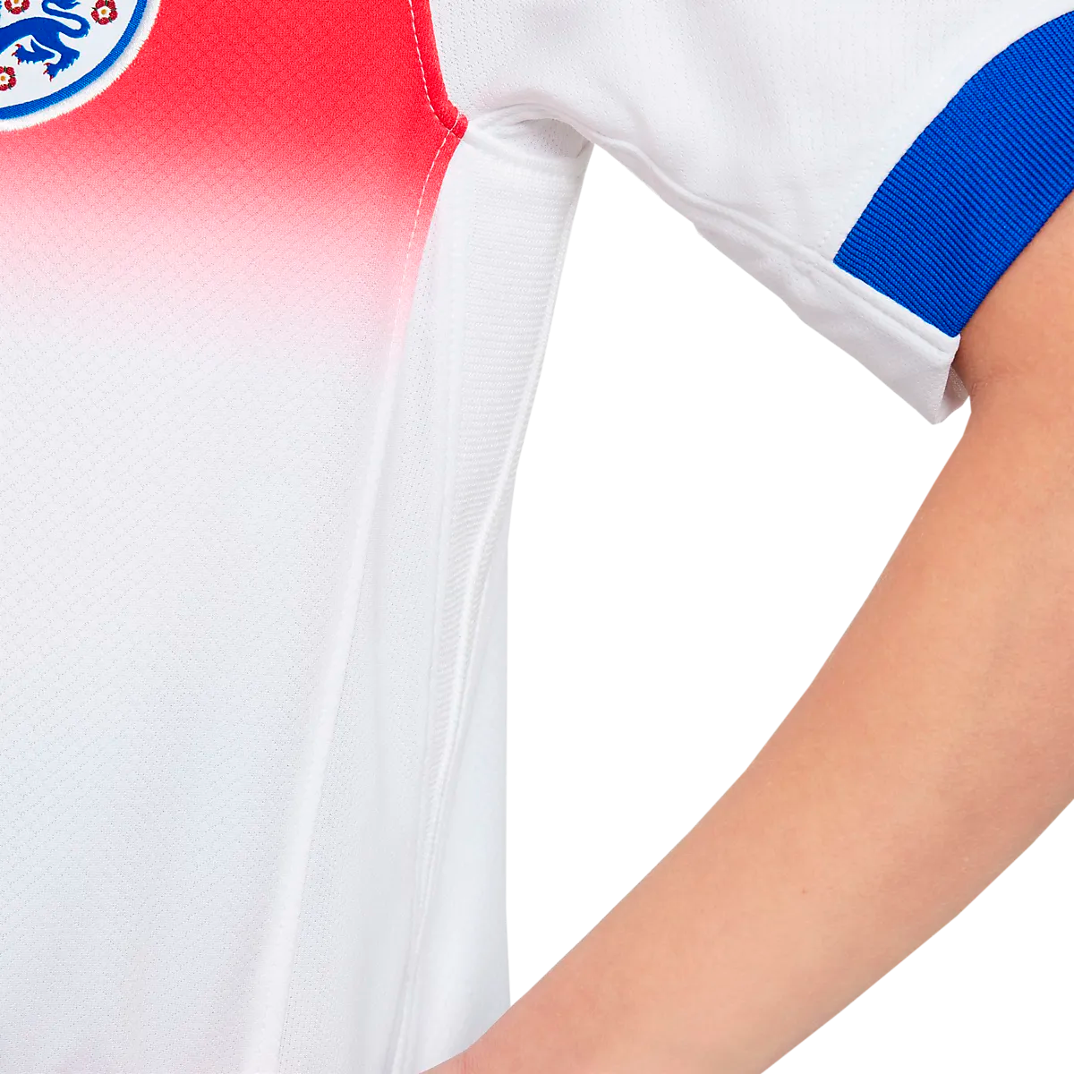 ● Рубашка болельщика ● Детские размеры ● Maaottelumerkki rinnassa ● Технология впитывания влаги Dri-FIT. ● Реплика домашней рубашки Англии 2025-2026 гг. ● 100% полиэстер Размеры: XS, S, M, L, XL | Цвета: Гипер Роял / Уай