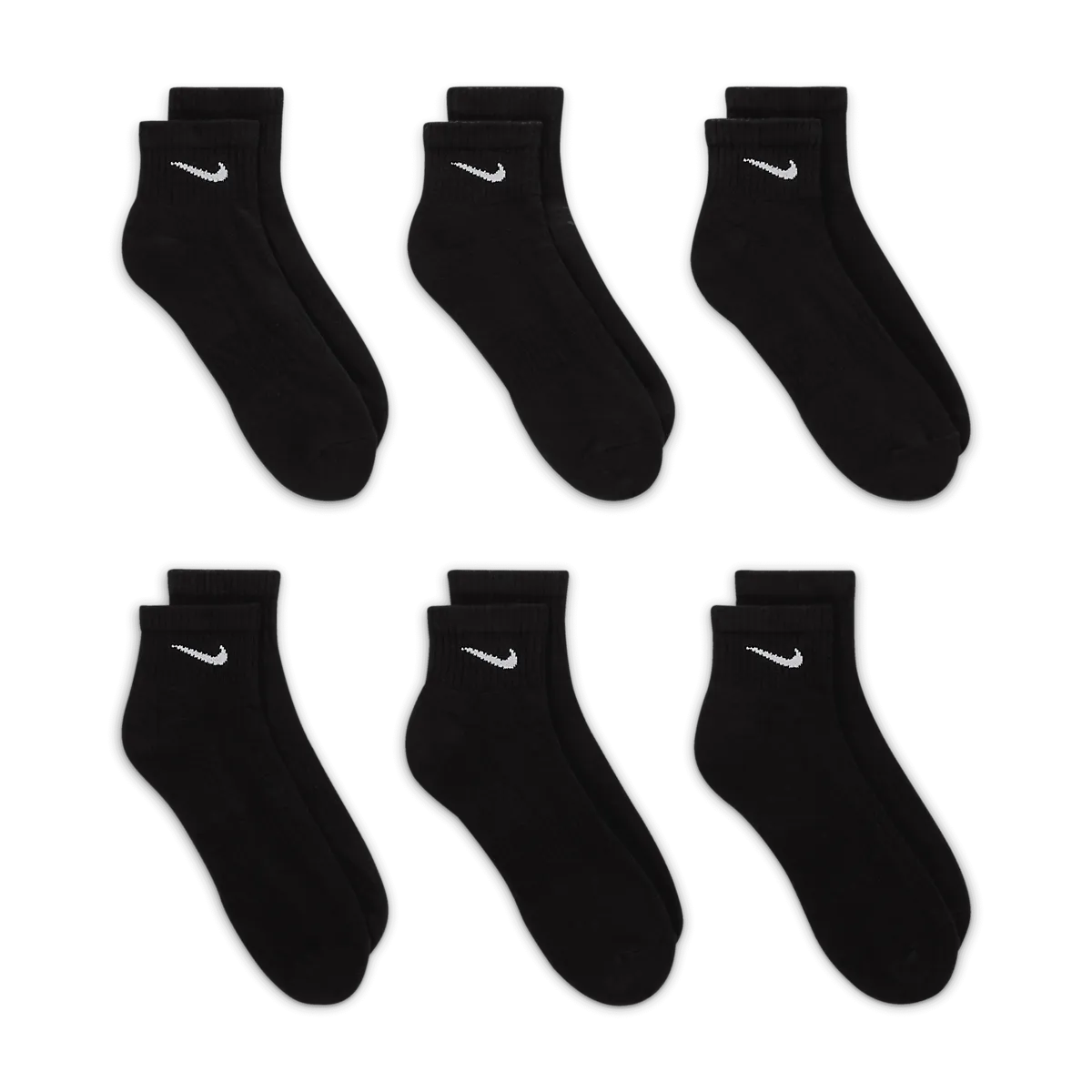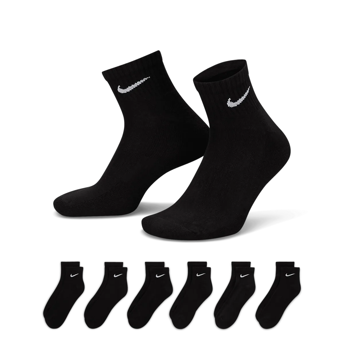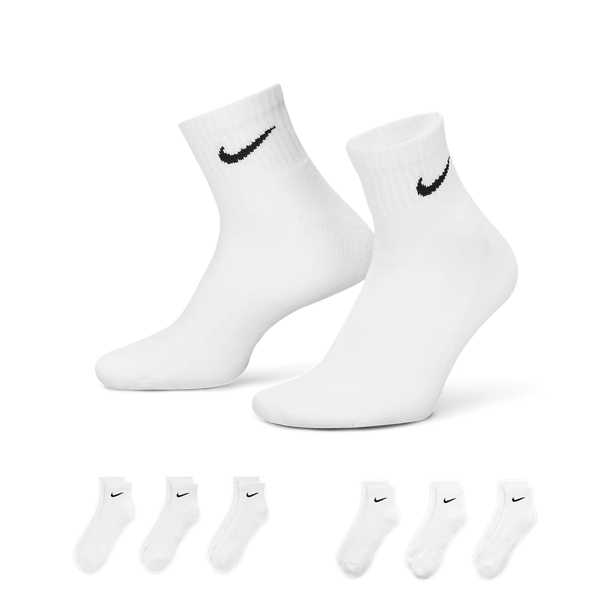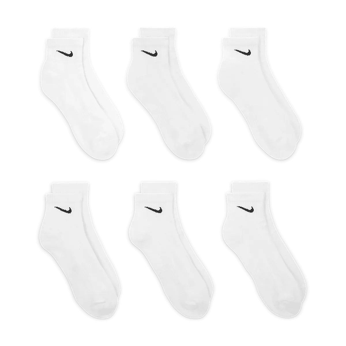 ● Носки ● Мужские размеры ● Длина лодыжки ● 6 упаковок ● Толстая и удобная подошва ● Прочная эластичная трикотажная лента на ноге. ● Технология впитывания влаги Dri-FIT. ● 69 % хлопок, 28 % полиэстер, 2 % эластан и 1 % нейлон. ● Таблица размеров (размер обуви): S=34–38, M=38–42, L=42–46 и XL=46–50. Размеры: S, M, XL, L | Цвета: Черный/Белый, Белый/Черный