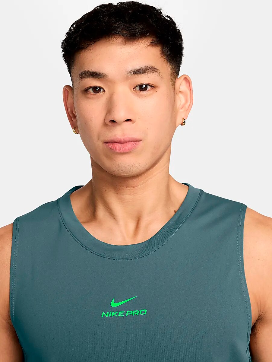 ● Тренировочная рубашка без рукавов ● Мужские размеры ● Узкая посадка ● Дышащие сетчатые панели; дополнительная вентиляция ● Удлиненная задняя часть ● технология Dri-FIT; влагоотталкивающий ● 100% полиэстер Размеры: S, M, L, XL | Цвета: Минеральный Сланец