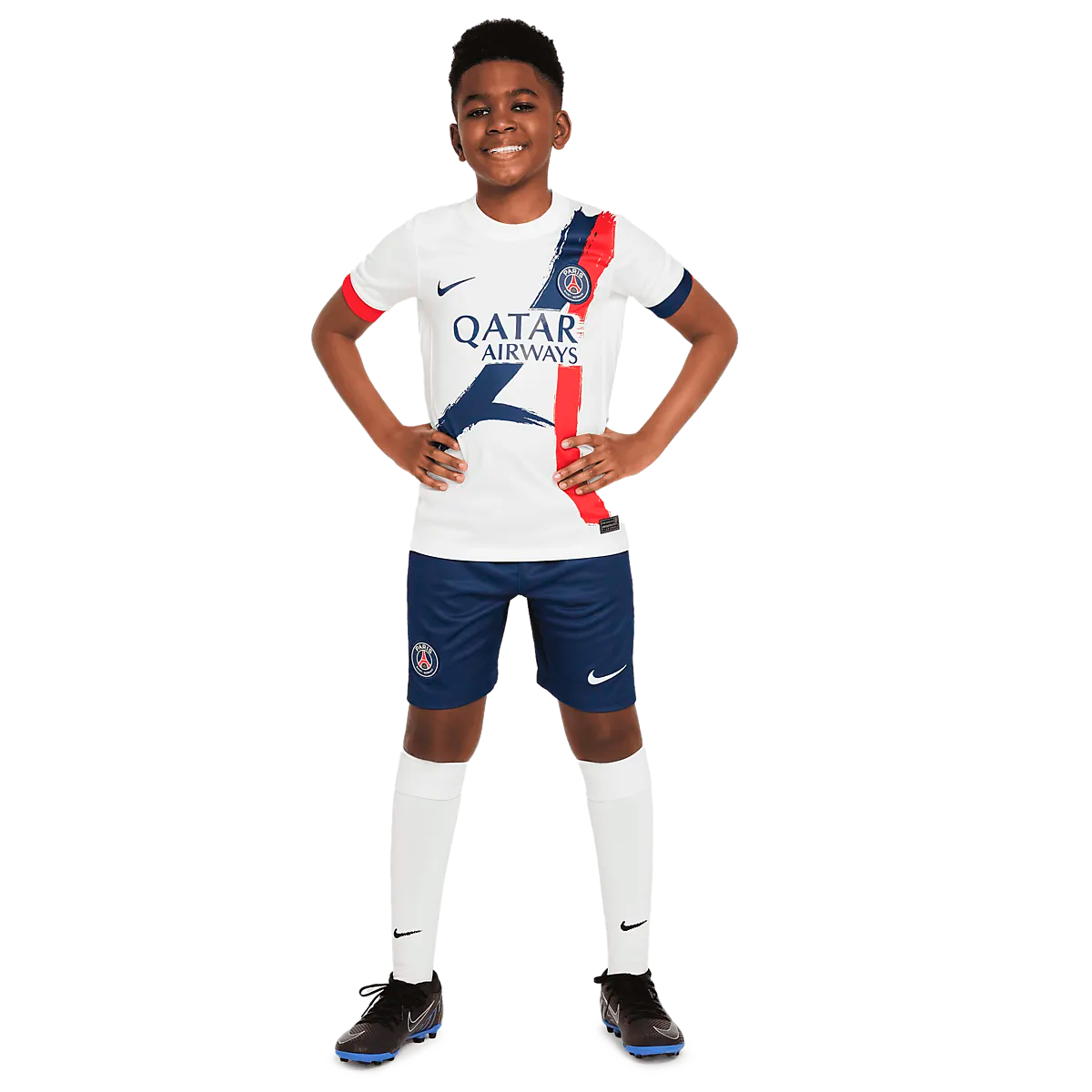 ● Футболка клубной команды ● Детские размеры ● Впитывает влагу Dri-FIT ● Реплика выездной рубашки Пари Сен-Жермен 2024-2025 гг. ● 100% полиэстер ● Доставка напрямую от партнера. Размеры: XS, S, M, L, XL | Цвета: Белый/Полночь