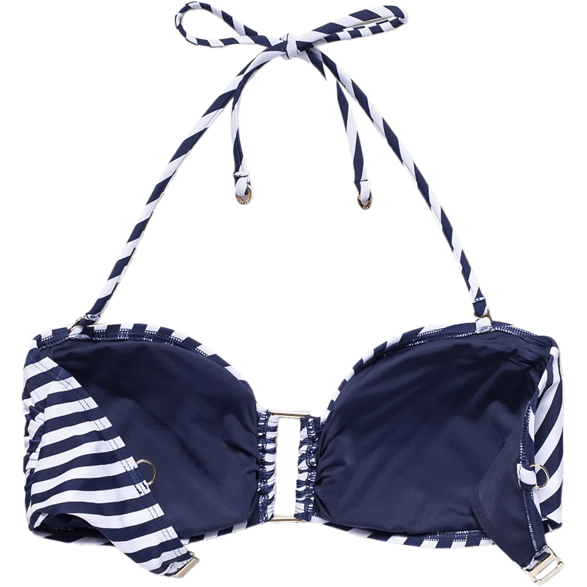 ● Верх бикини ● Женские размеры ● Многоцелевые брекеты ● Съемные формованные чашки. ● Подходит для пользователей с размером чашки A–C. ● 80% полиамид и 20% эластан. Размеры: 36 | Цвета: Темно-синий/Белый
