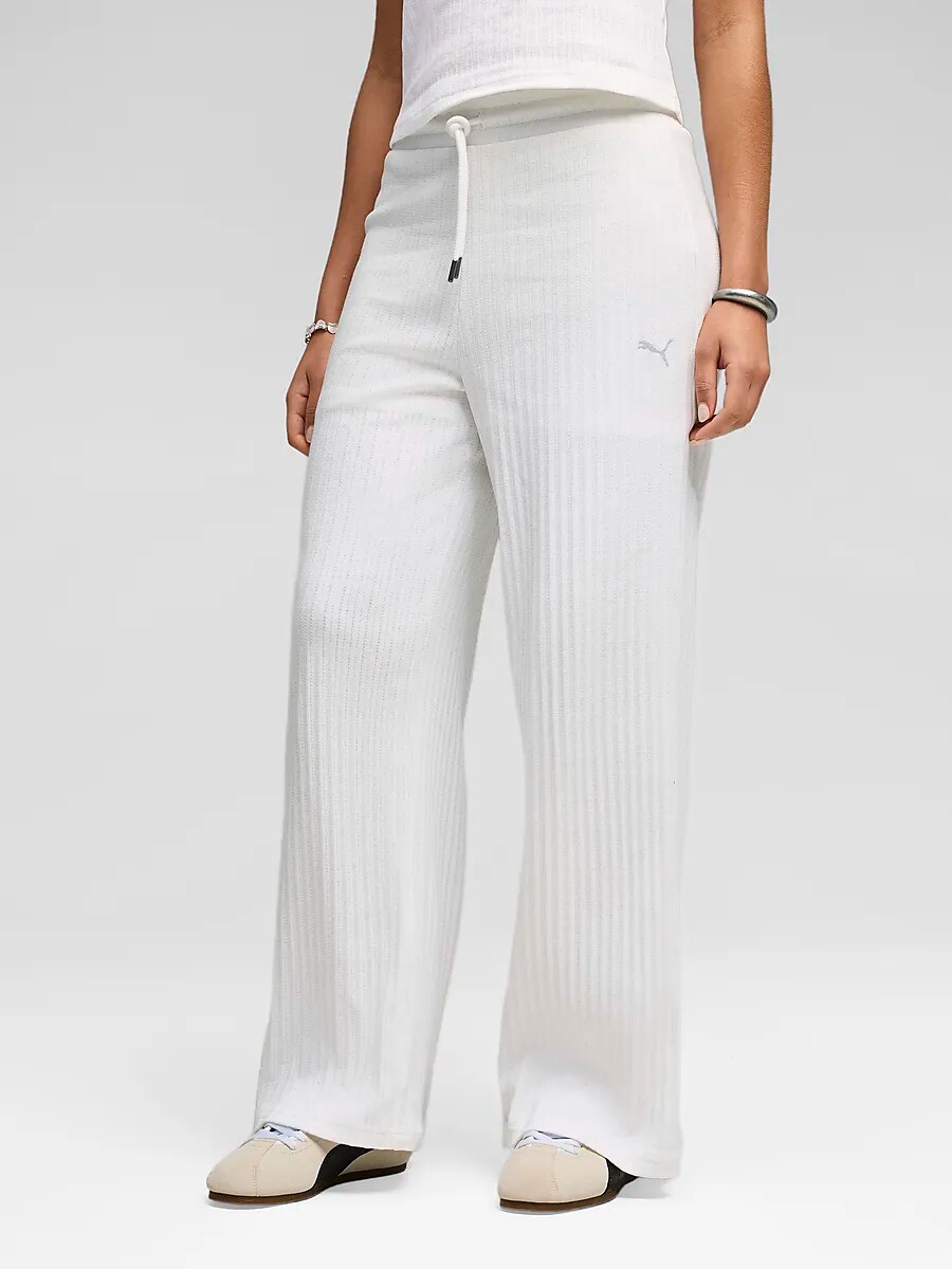● Колледж брюки ● Женские размеры ● Высокая талия ● Свободная посадка ● Эластичная талия со шнурком ● Эластичная вязка ● Два боковых кармана ● 58 % хлопок, 38 % полиэстер и 4 % эластан. Размеры: XS, S, M, L | Цвета: Пума Уайт
