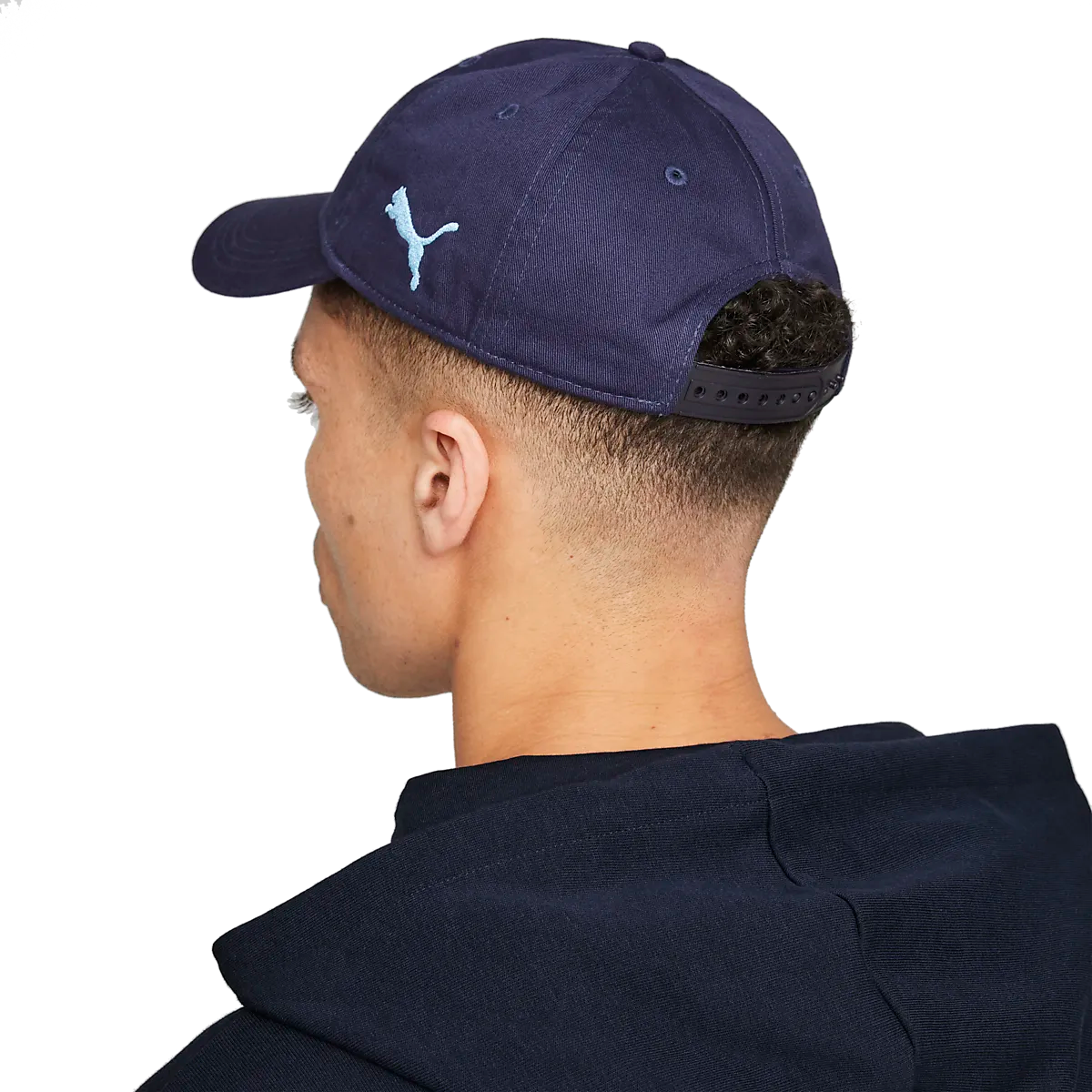 ● Кепка ● Взрослый размер; один размер ● Логотип Манчестер Сити ● Предварительно изогнутый магазин ● Регулируемая пряжка Snapback сзади. ● 100% хлопок Цвета: Пума ВМС