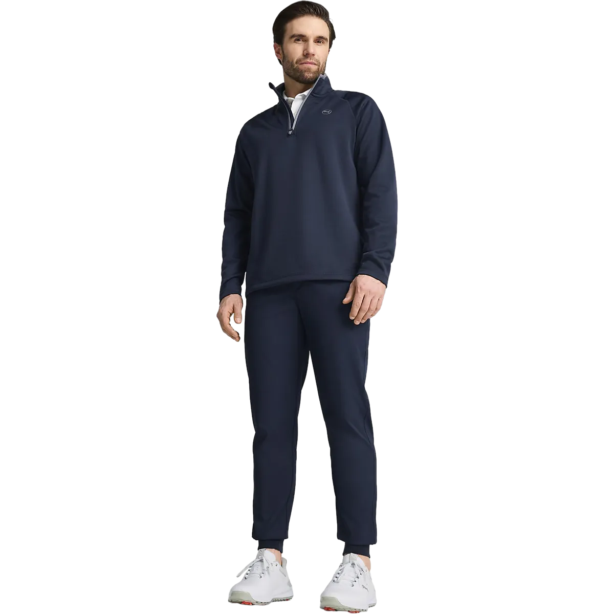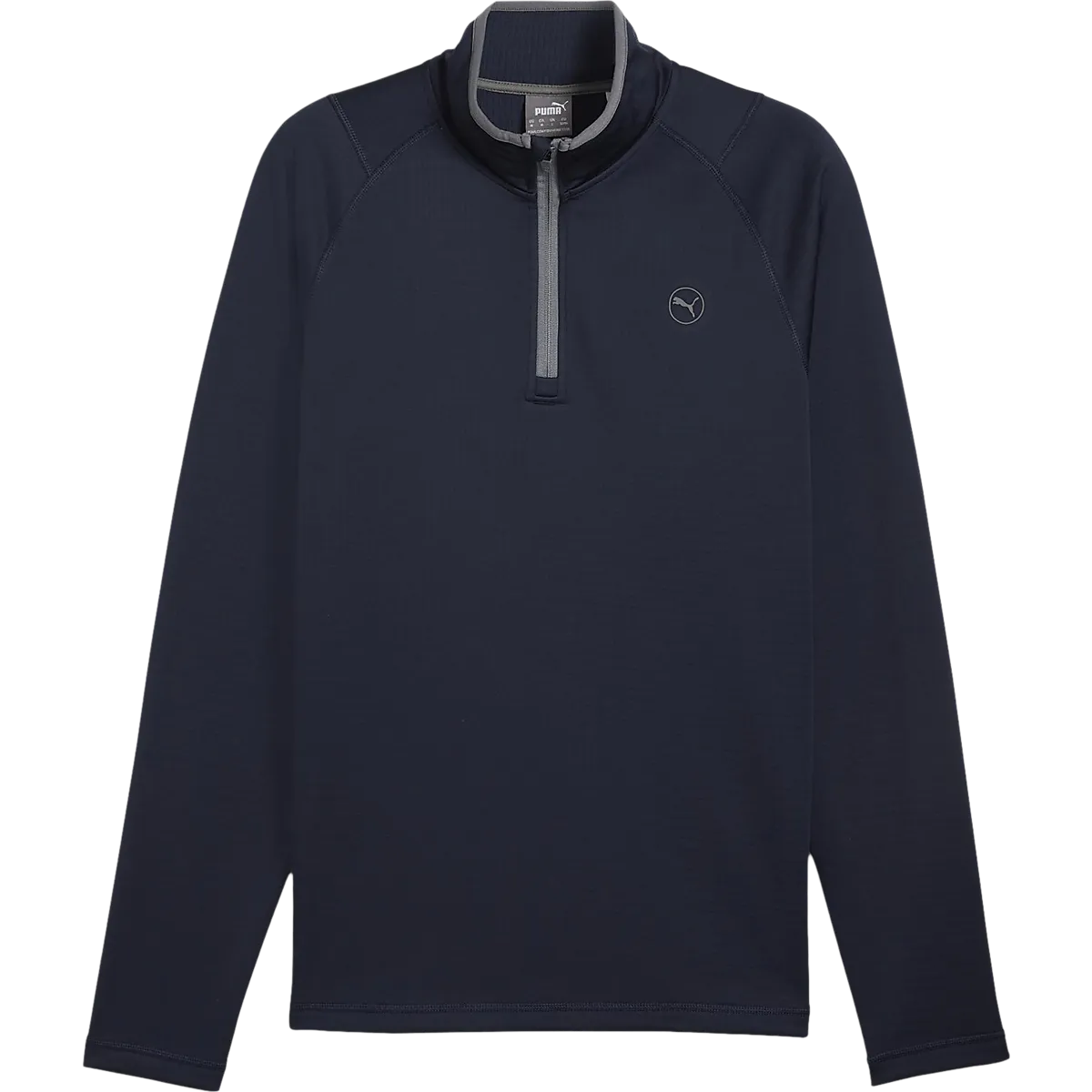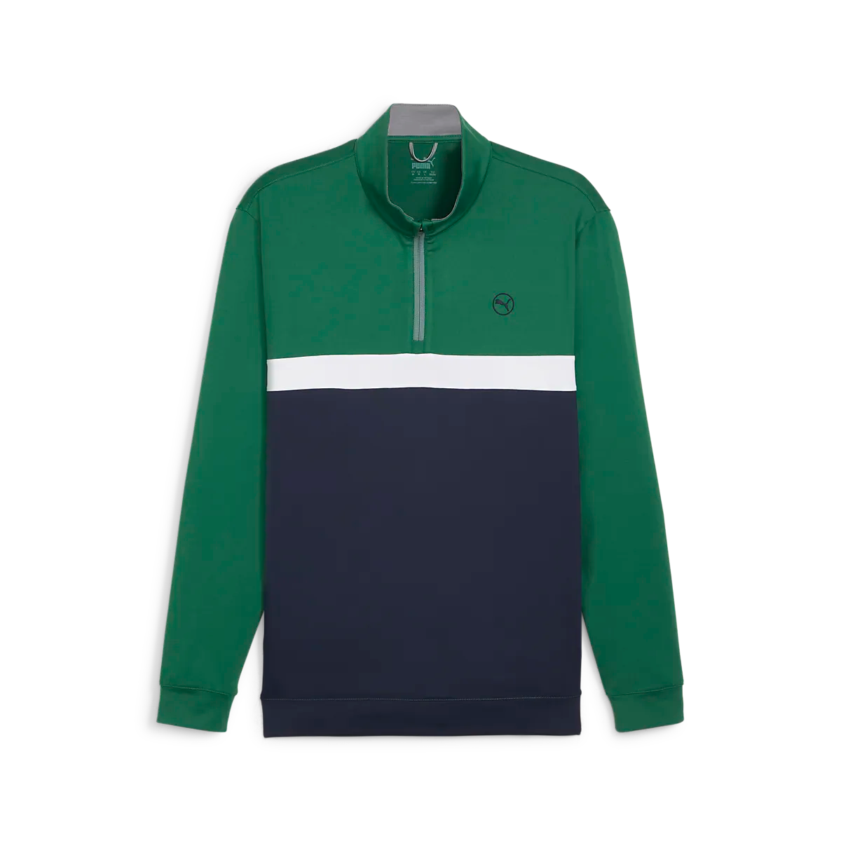 ● рубашка для гольфа ● Мужские размеры ● Молния пополам на вырезе горловины. ● Деталь логотипа Puma на груди. ● Технология DryCELL, отводящая влагу. ● Технология WarmCELL, сохраняющая тепло тела. ● 100% полиэстер Размеры: S | Цвета: Глубокий темно-синий, Темный мирт