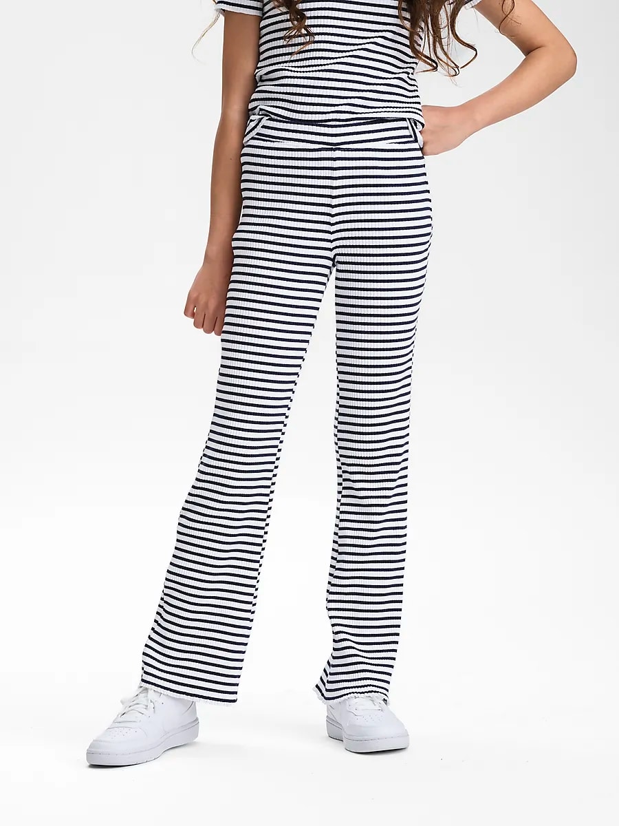 ● Колледж брюки ● Размеры 128–170. ● Модель клеш с расклешенными ножками. ● Удобная эластичная талия. ● Ребристый материал; мягкое и гибкое ощущение ● Внутренняя длина штанины в размере 140: ок. 64 см. Размеры: 128, 134, 140, 146, 152, 158, 164, 170 | Цвета: Белый, Темно-синяя полоса