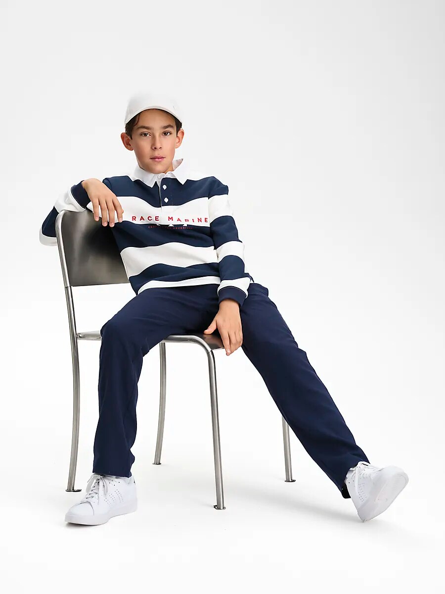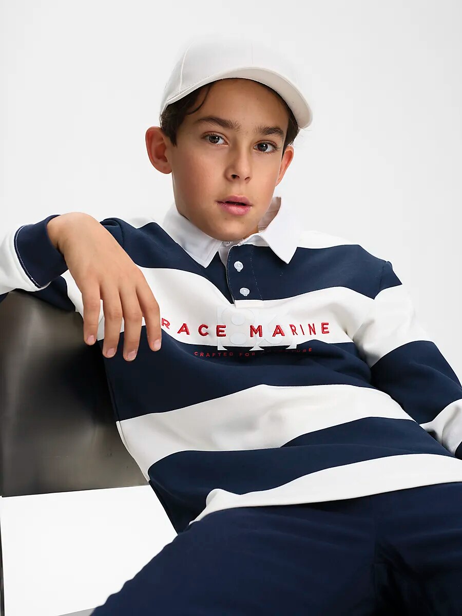 ● Рубашка для регби ● Размеры 122–176. ● Тканый воротник ● Панель кнопок с тремя кнопками ● Мягкий материал френч терри. ● Эластичные манжеты Размеры: 122-128, 134-140, 146-152, 158-164, 170-176 | Цвета: Темно-синий/Белый