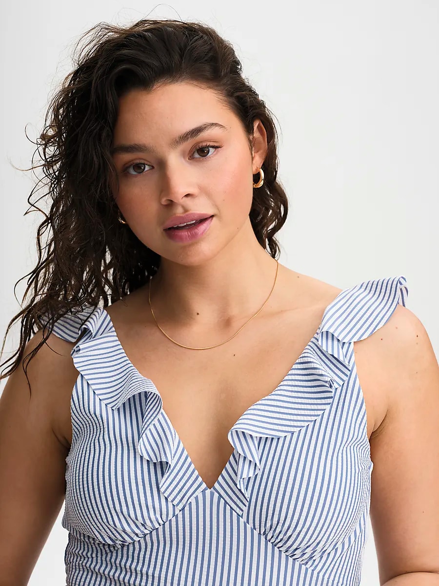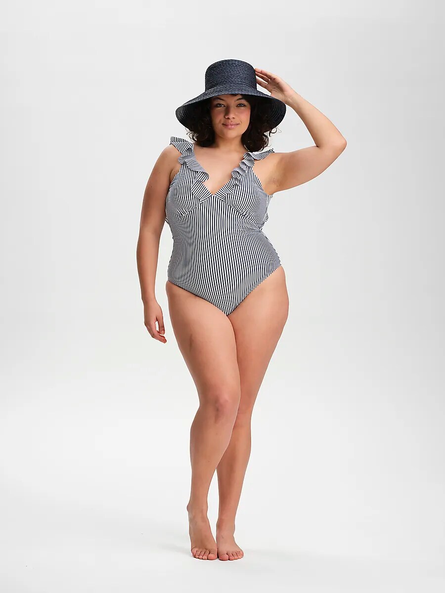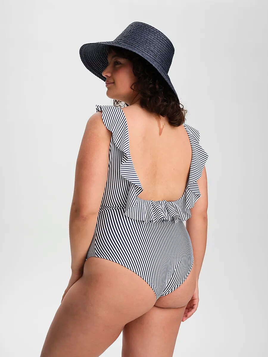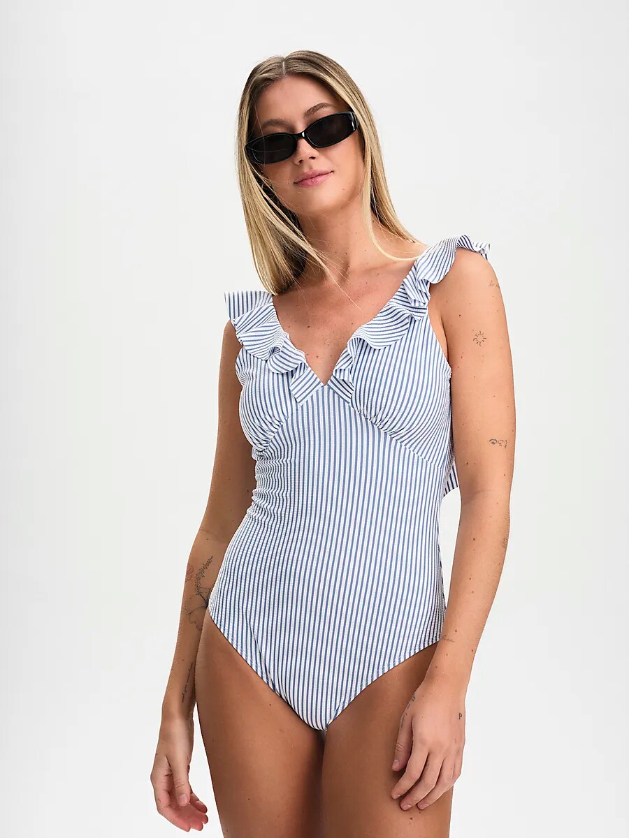 ● Купальник ● Женские размеры ● Красивые рюши спереди и сзади. ● Съемные внутренние части ● Глубокий вырез на спине ● Высокий срез на пешеходных дорожках ● Среднее покрытие спины. ● Материал сирсакер (волновой креп) Размеры: 36, 38, 40, 42, 44, 46 | Цвета: Военно-морской, Темно-синяя полоса, Дикий синий/белый