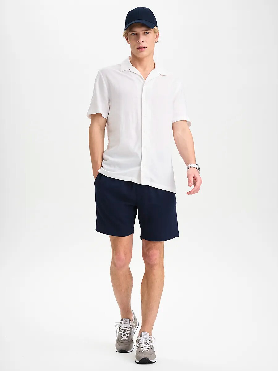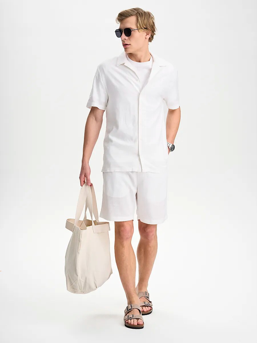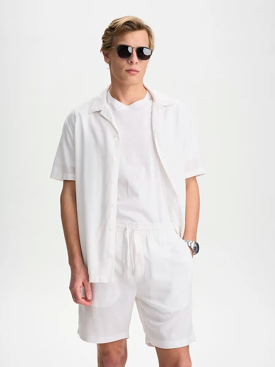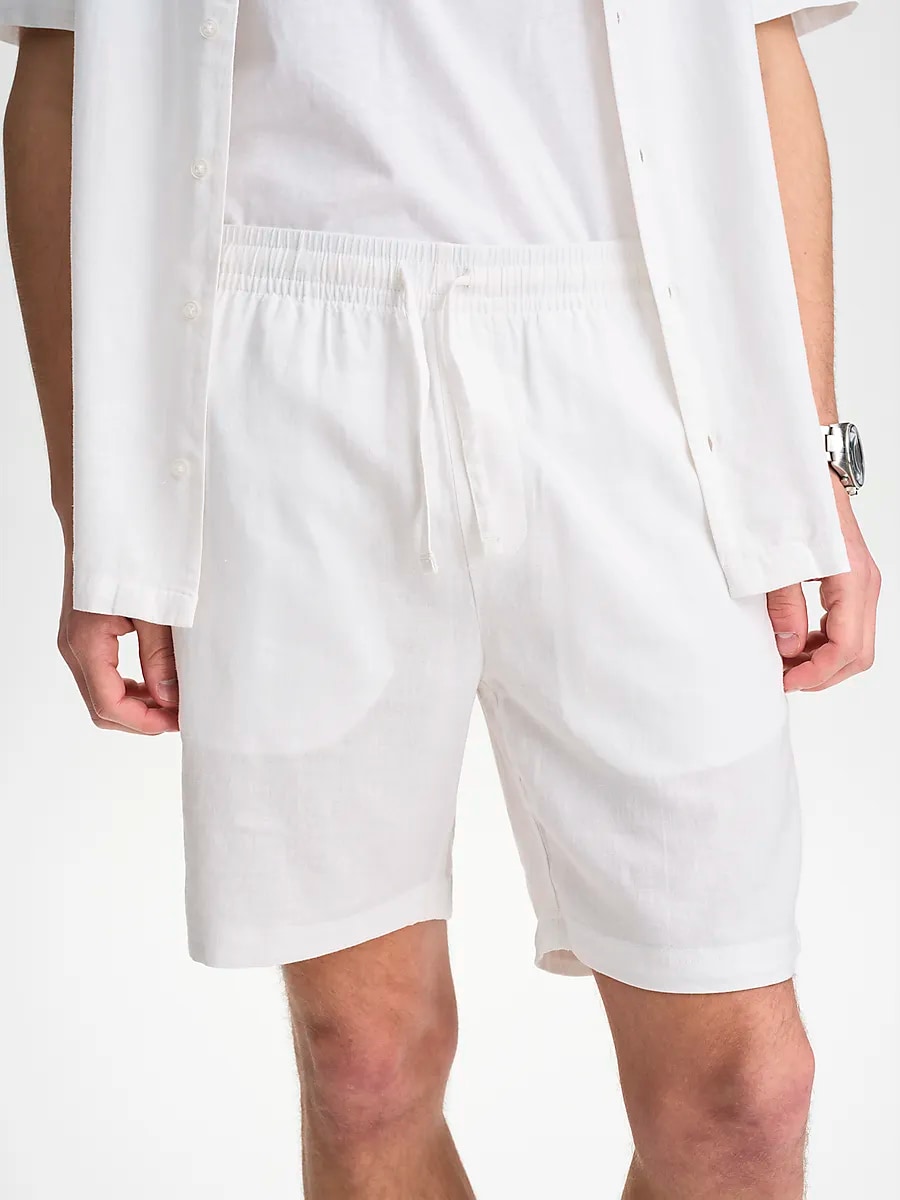 ● Линнешорты ● Мужские размеры ● Классный и приятный материал ● Эластичная талия со шнурком ● Два боковых кармана ● 73% вискоза и 27% лен. Размеры: XS, S, M, L, XL, XXL | Цвета: Белый, Военно-морской