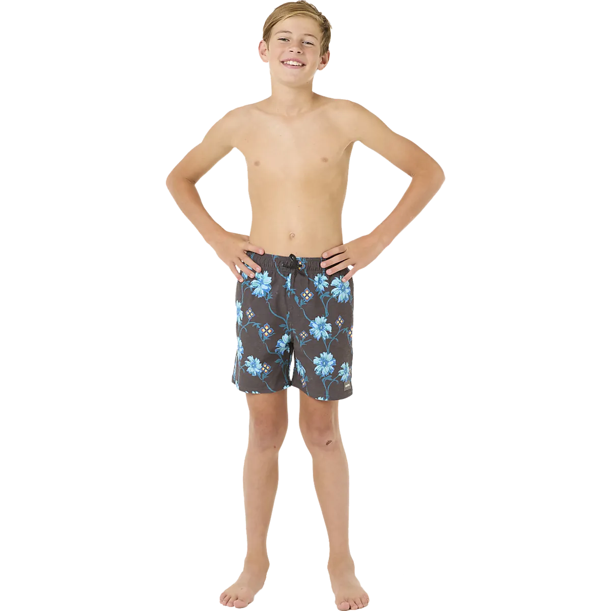 ● Плавательные шорты ● Детские размеры ● Эластичная талия со шнурком ● Задний карман с застежкой-липучкой ● 76 % полиэстер, 18 % хлопок и 6 % эластан. Размеры: 10, 12, 14, 16 | Цвета: Черный