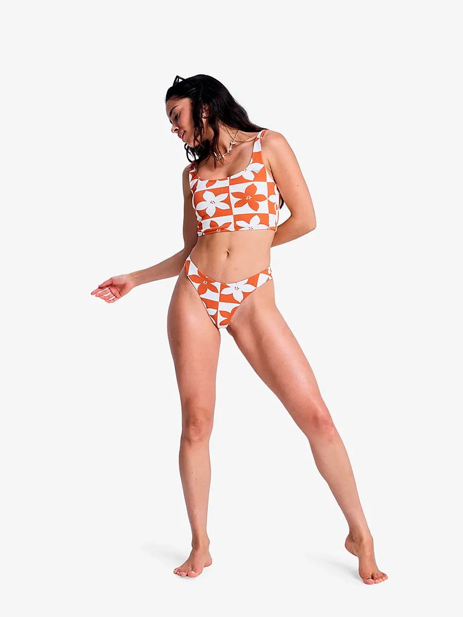 ● Плавки бикини ● Женские размеры ● Заниженная талия ● Меньше прикрытия сзади ● Гибкий и прочный материал со структурой пике. ● Вышитый логотип ROXY Размеры: XS, S, M, L, XL | Цвета: Имбирная специя Флора