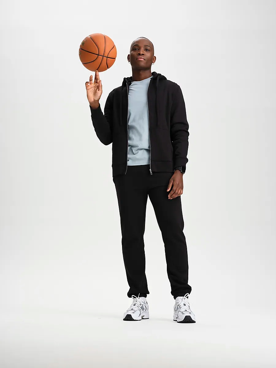 ● 49 % экологически чистого хлопка, 36 % переработанного полиэстера, 13 % переработанного хлопка и 2 % вискозы.
