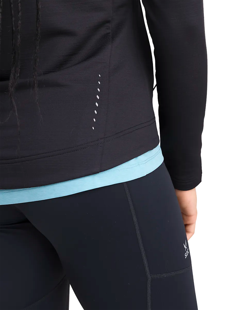 ● Беговая рубашка ● Женские размеры ● Шнурок в капюшоне ● Длинная молния спереди. ● Боковой карман на молнии ● функция TCS Airflow; хороший перенос влаги Размеры: XS | Цвета: Черный