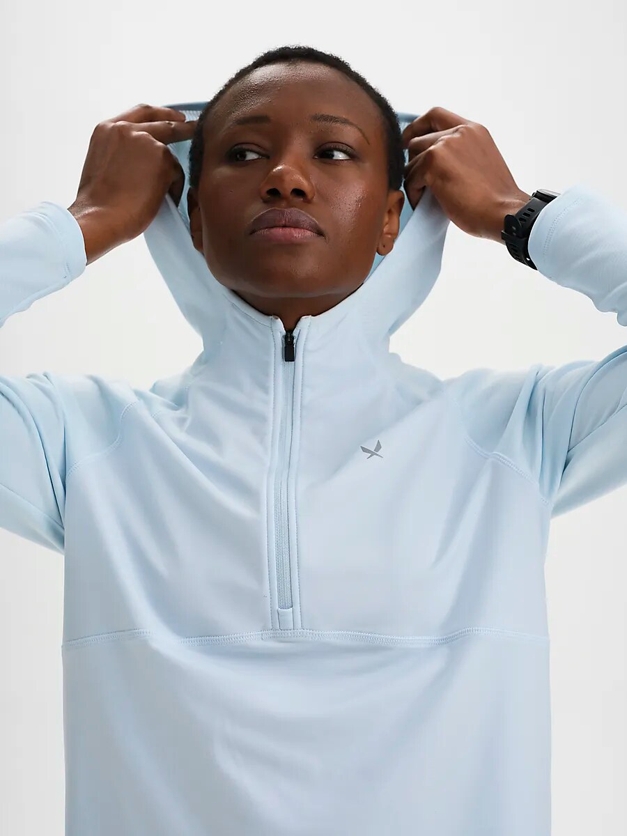 ● Беговая рубашка ● Женские размеры ● Капюшон и короткая молния на шее. ● Теплая матовая внутренняя поверхность ● Боковой карман на потайной молнии. ● Гибкий, гибкий материал обеспечивает свободу движений. ● функция TCS Airflow; хороший перенос влаги Размеры: XS, S, M, L, XL | Цвета: Ледяной синий, Мягкий бассейн, Весенний фиолетовый