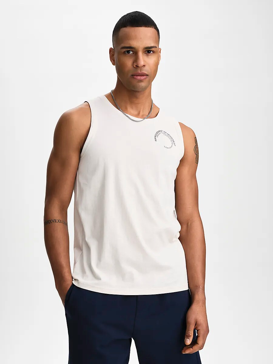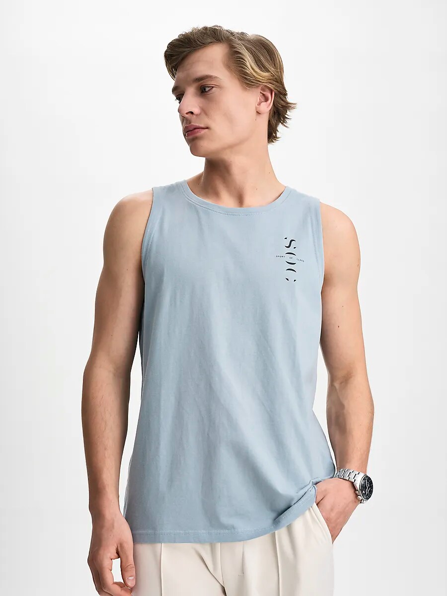 ● Рубашка без рукавов ● Мужские размеры ● Материал, который кажется мягким и прохладным ● Принт на груди Размеры: S, M, L, XL, XXL | Цвета: Синий, Природа Белый