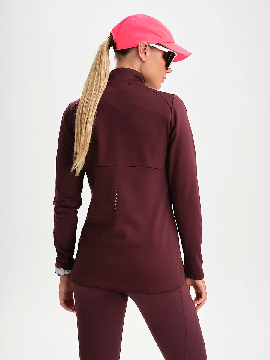 ● Беговая рубашка ● Женские размеры ● Теплая матовая внутренняя поверхность ● Длинная молния ● Боковые карманы на молнии ● Светоотражающие детали ● функция TCS Airflow; хороший перенос влаги Размеры: XS | Цвета: Черный, Дк Слива, Глубокий морской синий