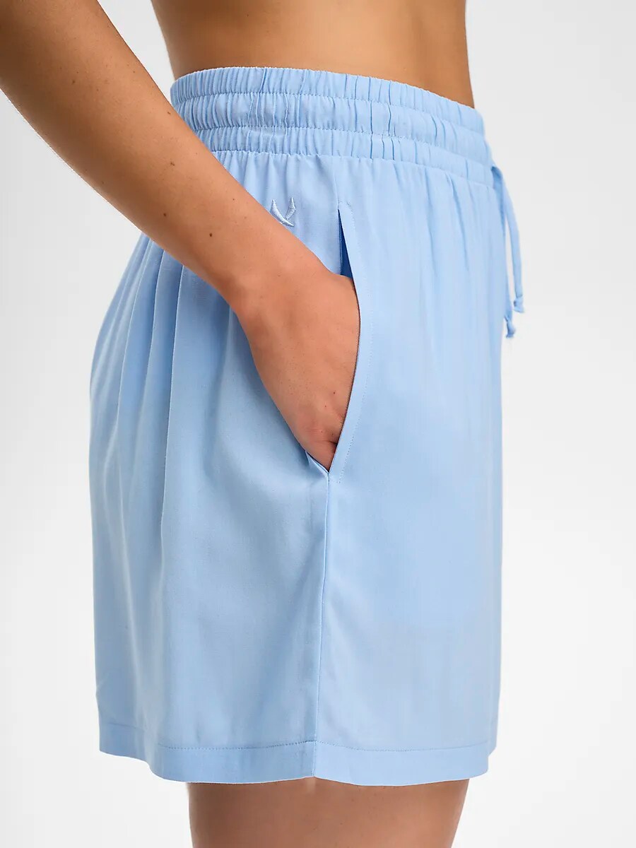 ● Шорты ● Женские размеры ● Воздушный и прохладный материал ● Эластичная талия со шнурком ● Два боковых кармана Размеры: XS, S, M, L, XL | Цвета: Канал Синий, Почти черный