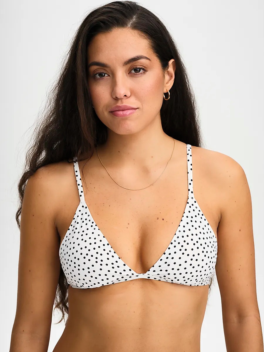 ● Верх бикини ● Женские размеры XS–L. ● Регулируемые бретели ● Съемная подкладка ● Застежка сзади на спине Размеры: XS, S, M, L | Цвета: Черный, Кремовые точки