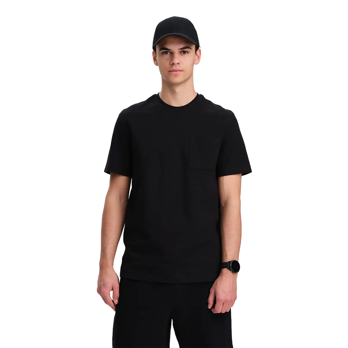 ● футболка ● Мужские размеры ● Расслабленный, свободный крой ● Немного более плотная ткань с текстурой. ● Нагрудный карман Размеры: S, M, L, XL | Цвета: Черный, Мягкий белый