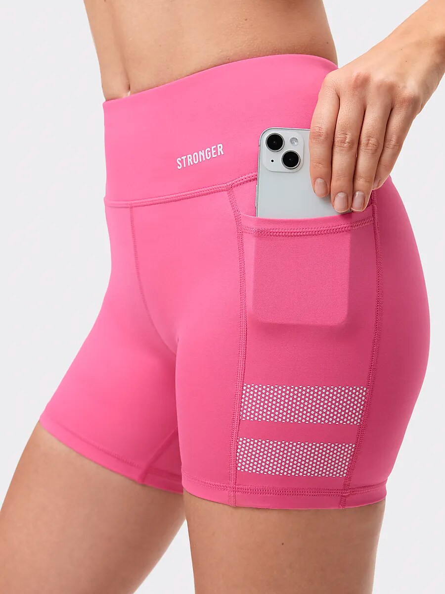 ● Тренировочные шорты ● Женские размеры ● Высокая талия ● Эффект стягивания сзади создает моделирующий силуэт. ● Два боковых кармана Размеры: XS, S, M, L, XL | Цвета: Черный, Фанданго Розовый