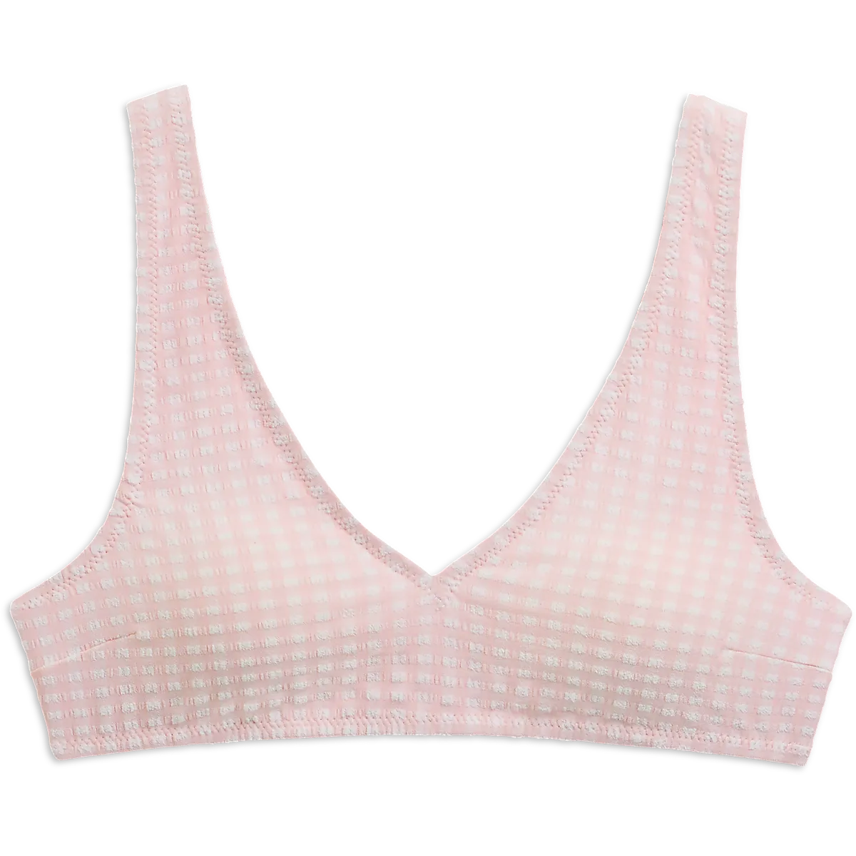 ● Верх бикини ● Женские размеры ● V-образный вырез ● Структурированная ткань Размеры: XS, S, M, L | Цвета: Розовый клетчатый узор
