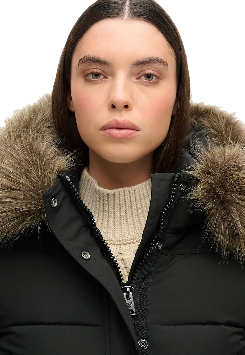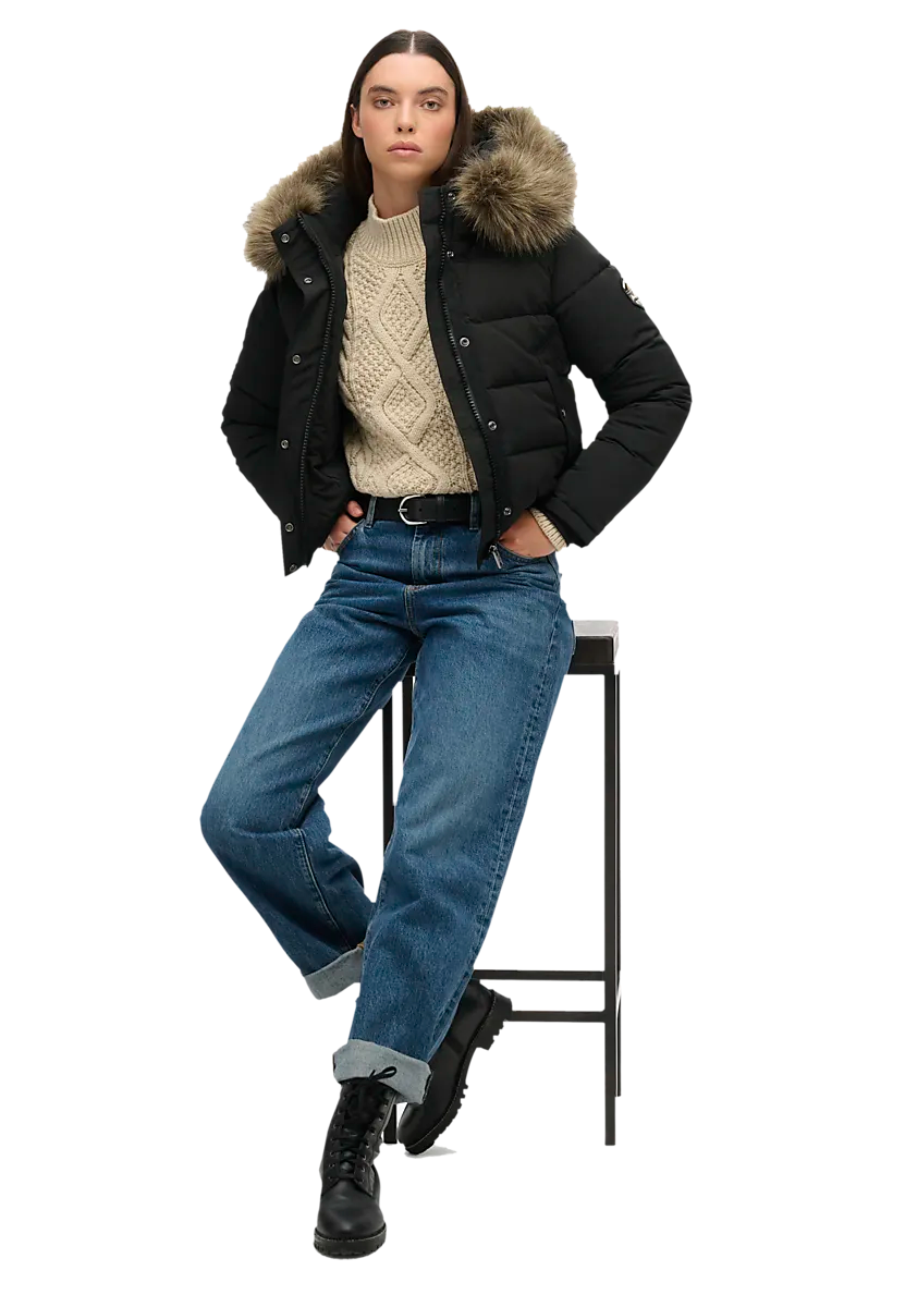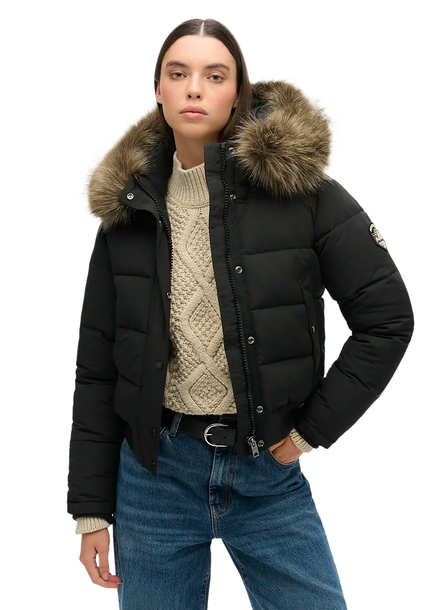 ● Стеганая куртка ● Женские размеры ● Теплая синтетическая подкладка. ● Капюшон со съемным искусственным мехом. ● Боковые карманы на кнопках ● Эластичные манжеты и подол Размеры: EU 42 | 14 | Цвета: Черный