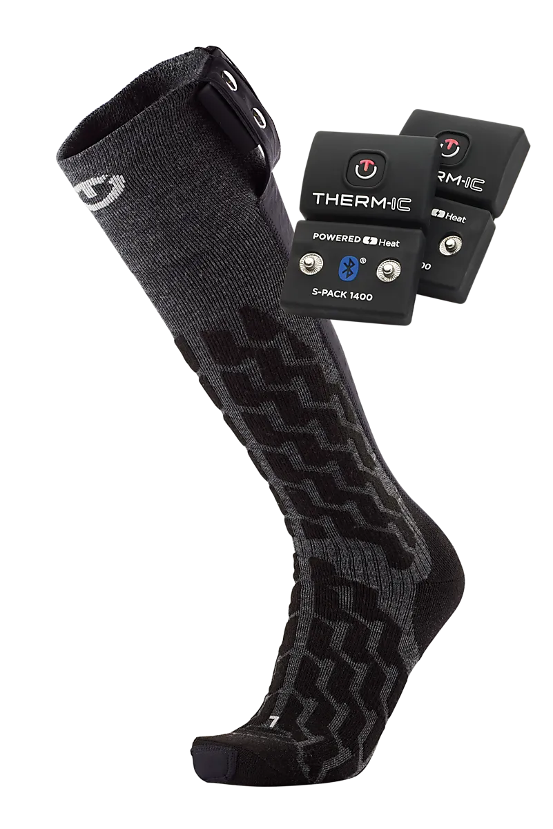 ● Термоноски на батарейках ● Размеры 35–47 ● Носки, одна пара ● Две батареи S-PACK 1400B. ● USB-кабель ● Нагревается до 16 часов. ● Bluetooth-совместимый ● 49 % акрил, 27 % полиамид, 10 % мериносовая шерсть, 12 % полипропилен и 2 % эластан. Размеры: 39-41, 42-44, 45-47 | Цвета: Черный