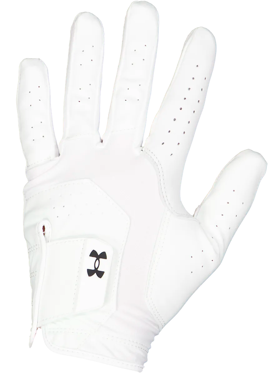 ● Перчатка для гольфа ● Мужские размеры ● Левый ● Микроперфорация повышает воздухопроницаемость. ● 60 % кожа, 22 % нейлон, 11 % полиэстер, 5 % полиуретан и 2 % эластан. Размеры: S, M, L, XL | Цвета: Белый, Черный