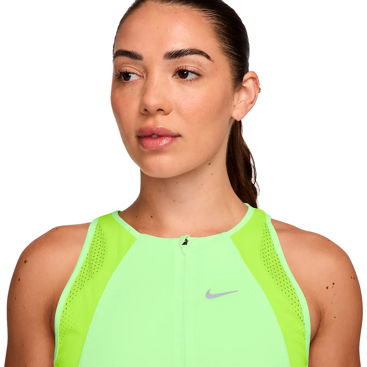 ● Беговая рубашка без рукавов ● Женские размеры ● Легкий сетчатый материал сохраняет прохладу. ● Технология Nike Dri-FIT отводит влагу. ● Светоотражающие детали ● 90% полиэстер и 10% эластан. Размеры: XS, L, XL | Цвета: Едва Вольт/Вольт