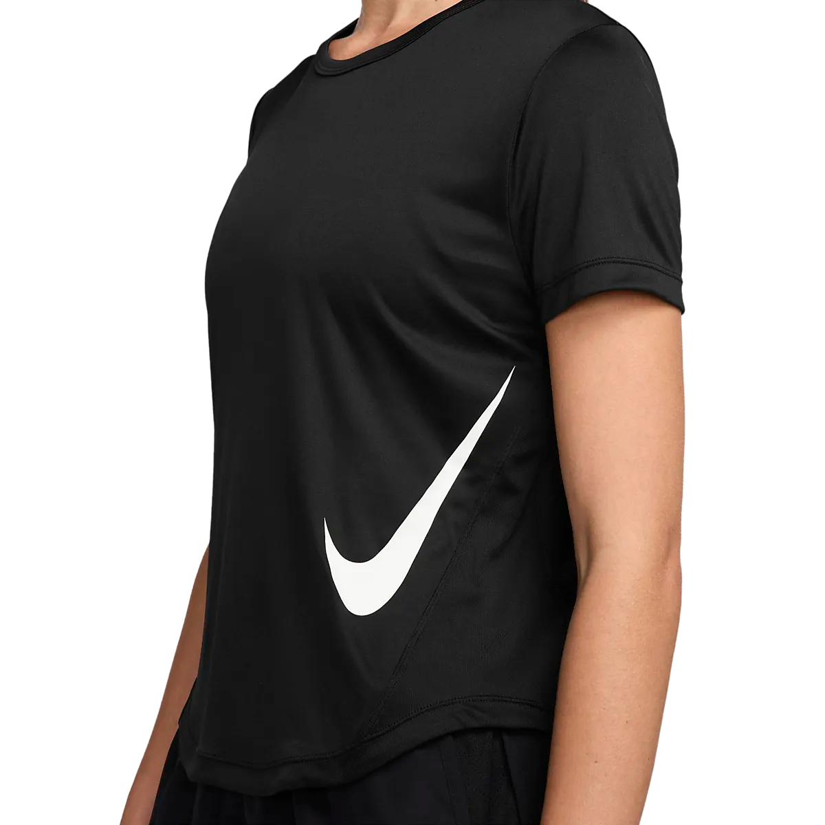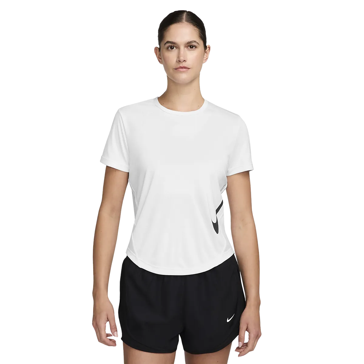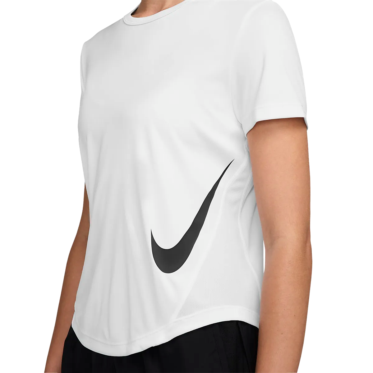 ● Беговая рубашка ● Женские размеры ● Зауженная талия ● Закругленный край для дополнительной защиты. ● Впитывает влагу Dri-FIT ● 100% полиэстер Размеры: XS, XL | Цвета: Черный/белый, Белый/черный