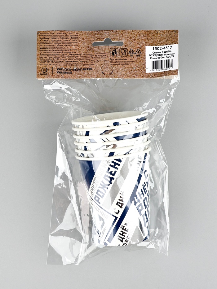 Стакан бумажный одноразовый «С днем рождения», 250 мл 6 шт. — Характеристики