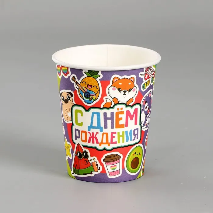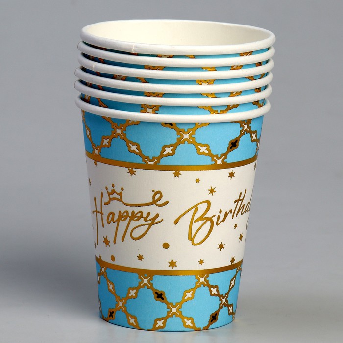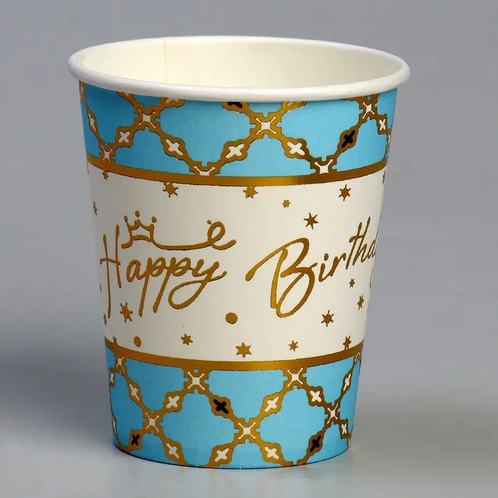 Стакан бумажный одноразовый «С днём рождения», с тиснением, в наборе 6 штук, голубой — Характеристики