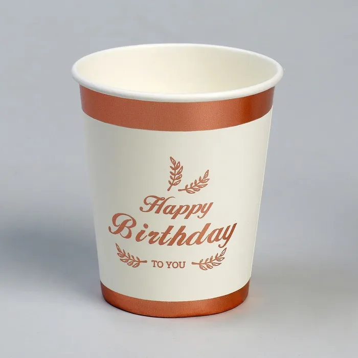 Стакан бумажный одноразовый «С днём рождения», в наборе 6 штук, бронзовый — Характеристики