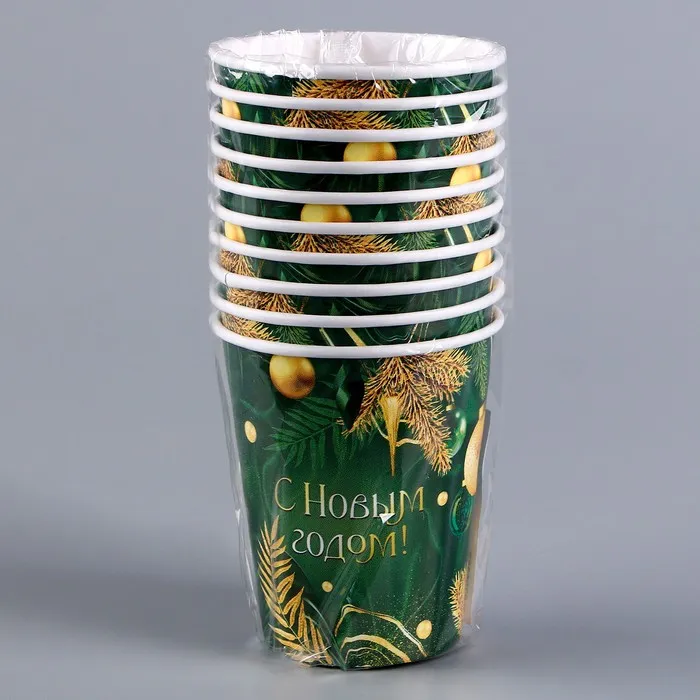 Стакан бумажный одноразовый «С Новым годом», изумруд — Характеристики