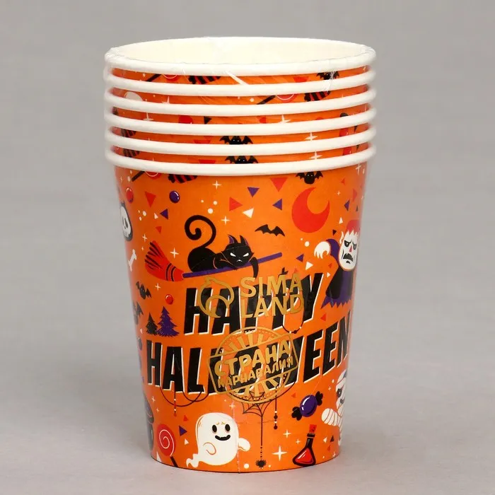 Стакан бумажный одноразовый «Счастливого хэллоуина», в наборе 6 шт. — Характеристики