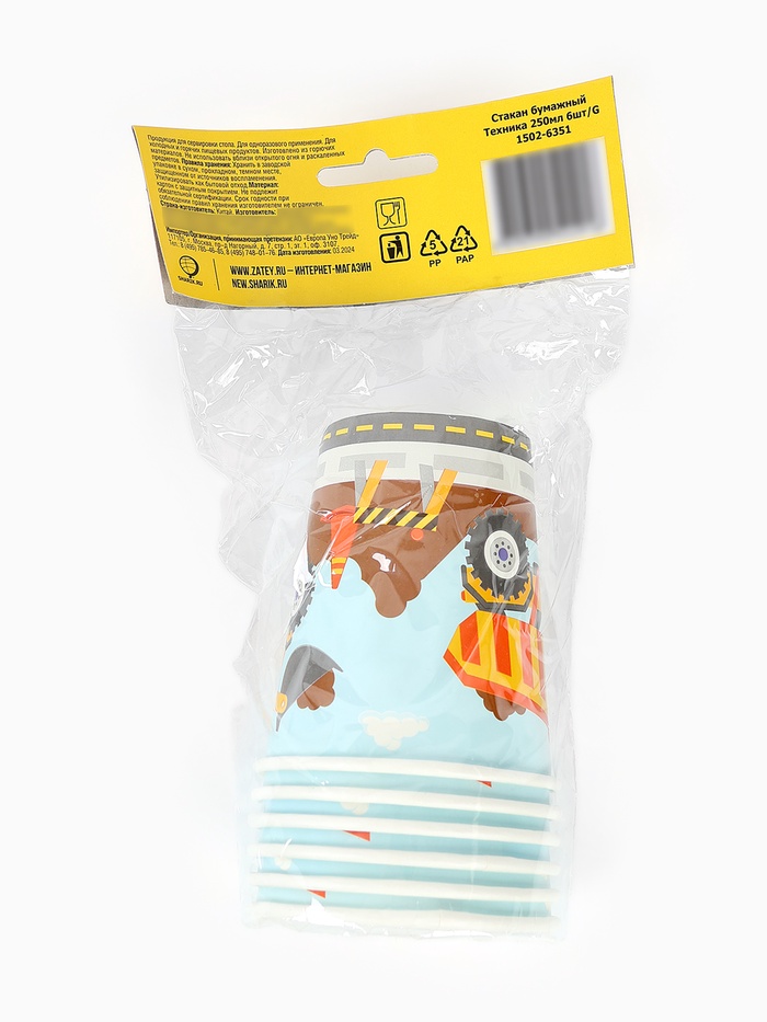 Стакан бумажный одноразовый «Техника», 250 мл, 6 шт. — Характеристики