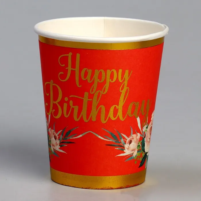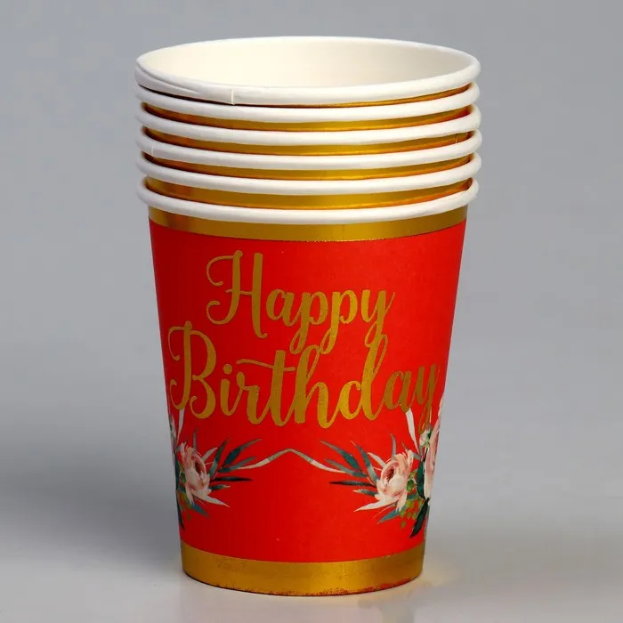 Стакан бумажный «С днём рождения», в наборе 6 штук, красный — Характеристики