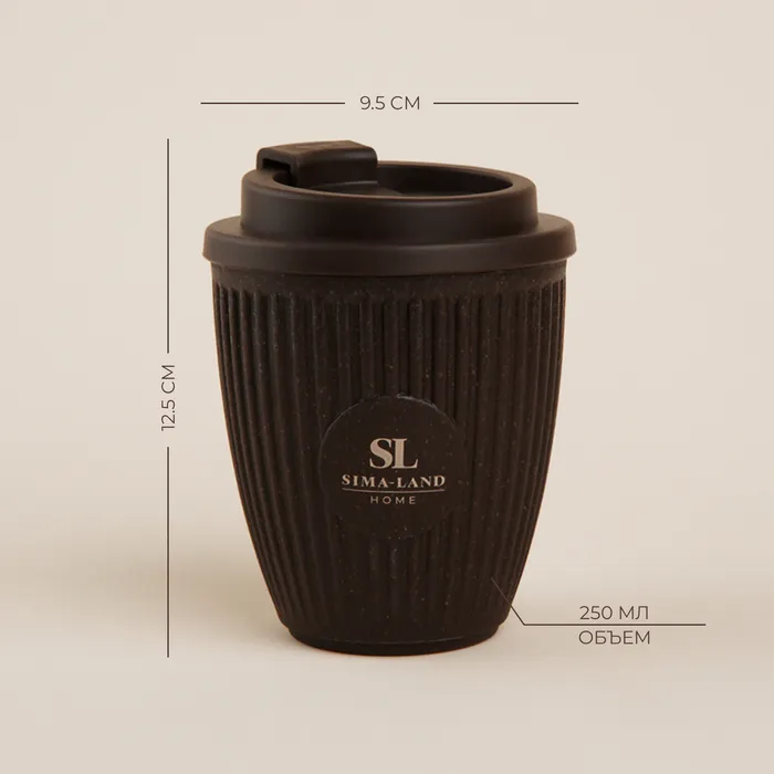 Стакан для кофе SL Home, 250 мл, 9.5×12.5 см, с крышкой, коричневый — Характеристики