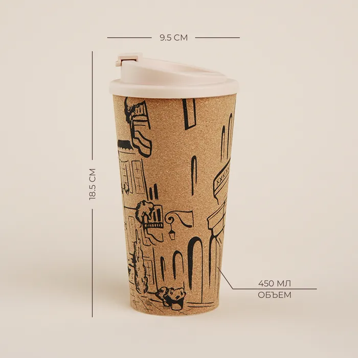 Стакан для кофе SL Home «Севилья», 450 мл, 9.5×18.5 см, пробковый, с крышкой, бежевый — Характеристики