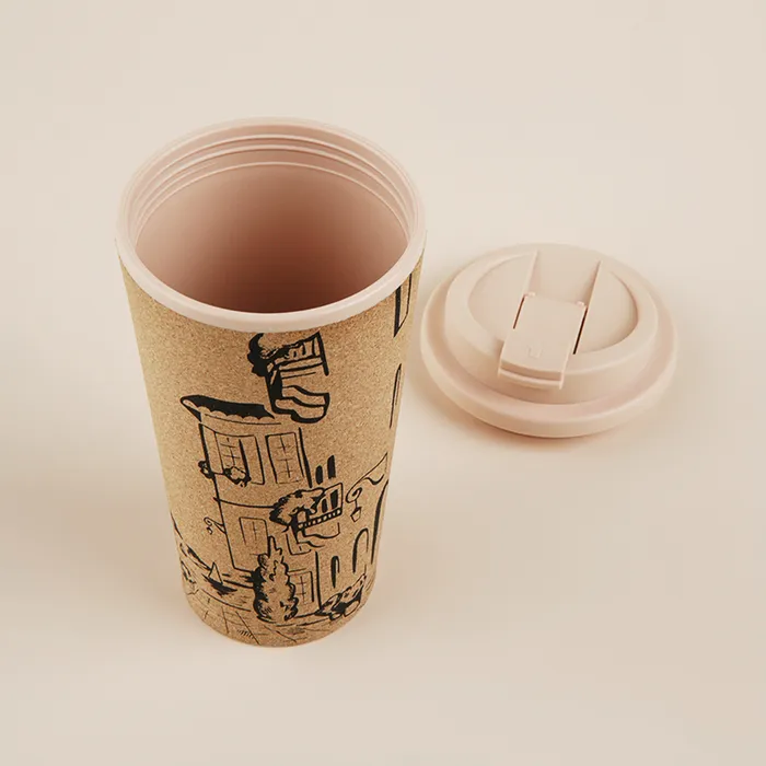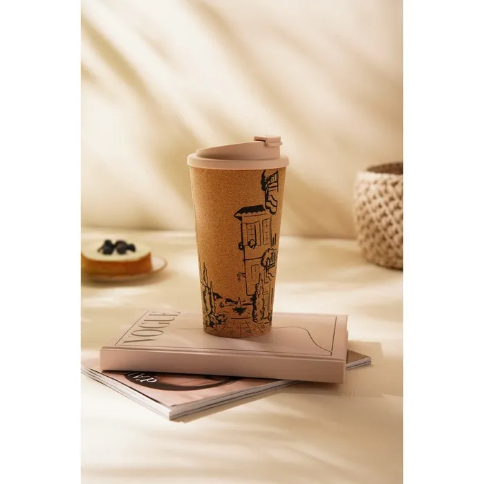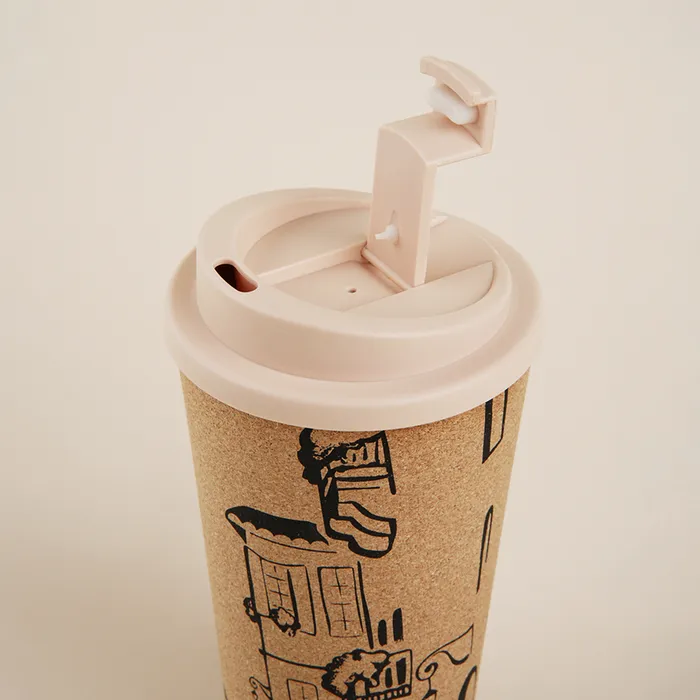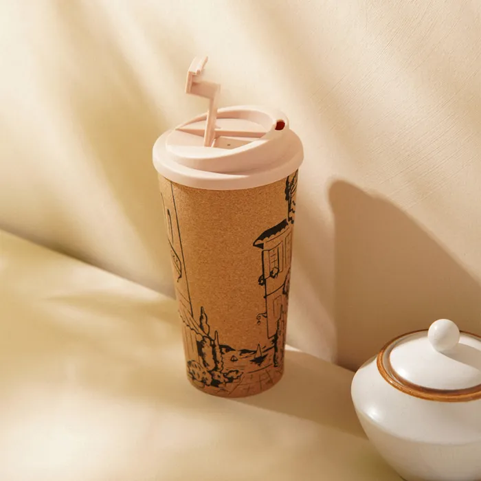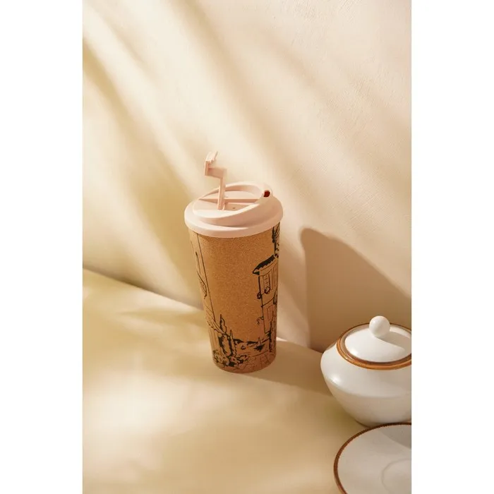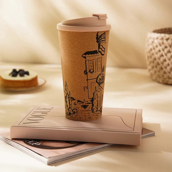 Изготовленный из пробки и пластика, стакан не только приятен на ощупь благодаря своей гладкой текстуре, но и безопасен для горячих напитков. Надежная крышка плотно закрывается, предотвращая проливание, что делает его идеальным выбором для использования в дороге или на работе.