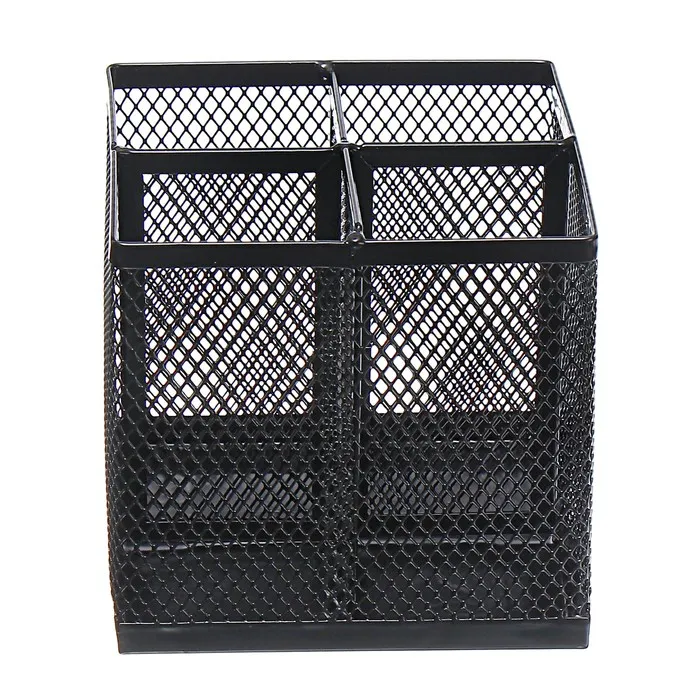 Квадратная подставка для канцелярии станет стильным и функциональным элементом вашего рабочего стола. Её металлическая структура обеспечивает прочность и долговечность, делая её идеальным выбором для хранения ручек и карандашей. Элегантный чёрный цвет подчёркивает современный дизайн, добавляя изысканности вашему рабочему пространству.
