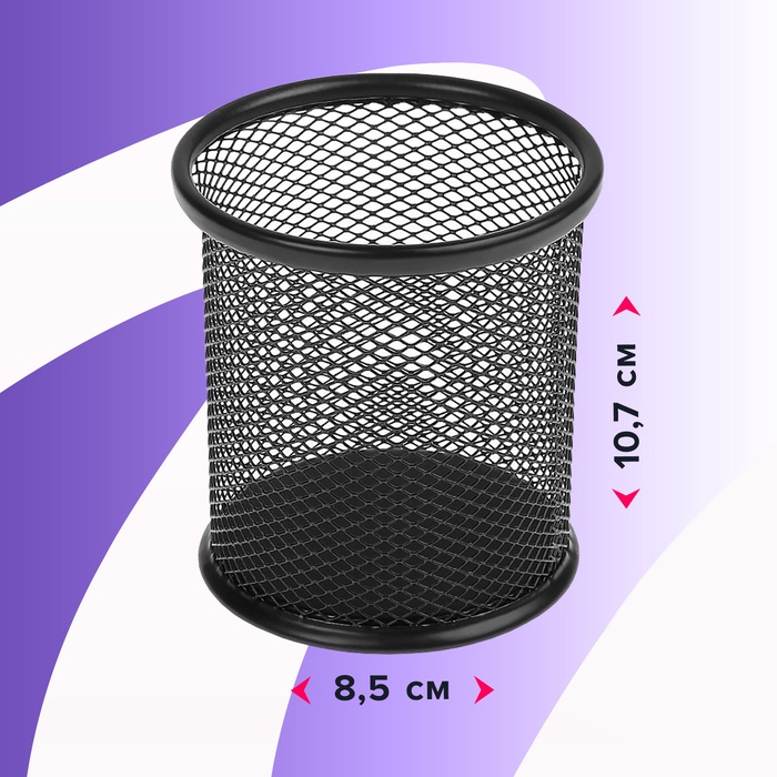 Стакан для пишущих принадлежностей, круглый, металлический, чёрный — Характеристики