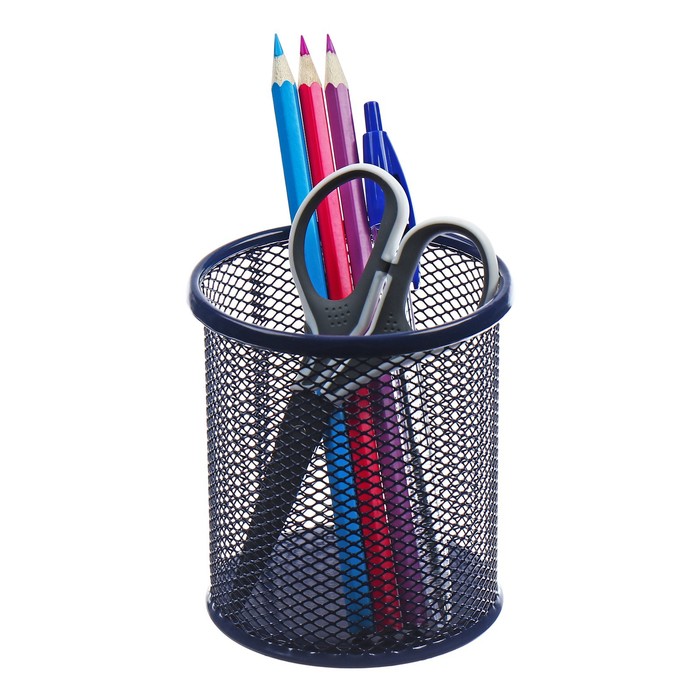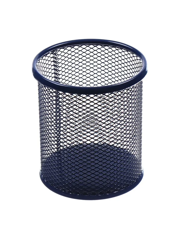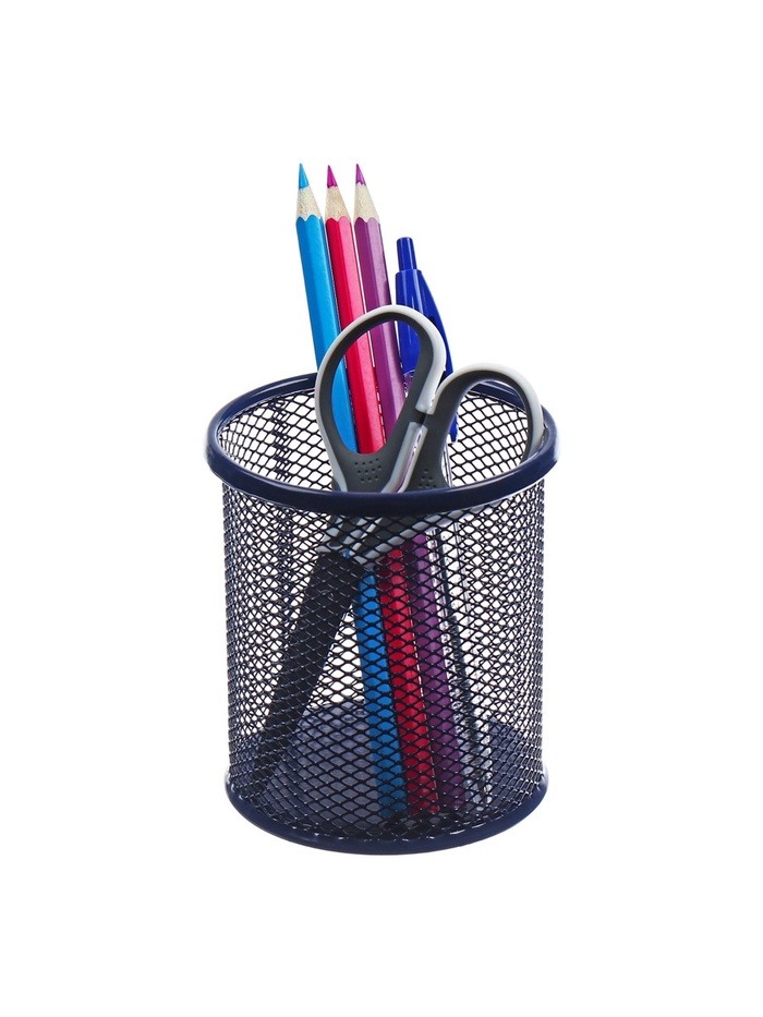 Стакан для пишущих принадлежностей, круглый, металлический, синий — Характеристики