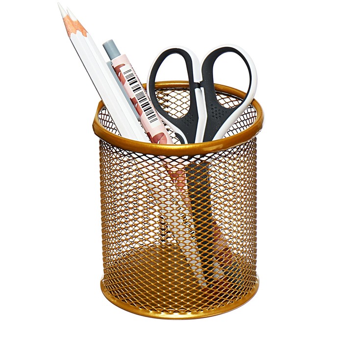 Позолоченный держатель для канцелярии станет стильным и функциональным дополнением любого рабочего пространства. Этот изящный аксессуар выполнен из металла и представлен в ярком красном цвете, придающим вашему столу элегантный акцент. Упрощайте организацию рабочего места, сохраняя все ваши пишущие принадлежности в одном месте. Эффективная конструкция сетки позволяет быстро находить нужные вам мелочи, ограничивая беспорядок на столе.