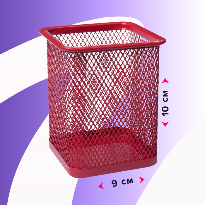Стакан для пишущих принадлежностей, квадратный, металлическая сетка, красный — Характеристики