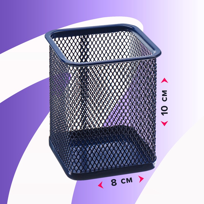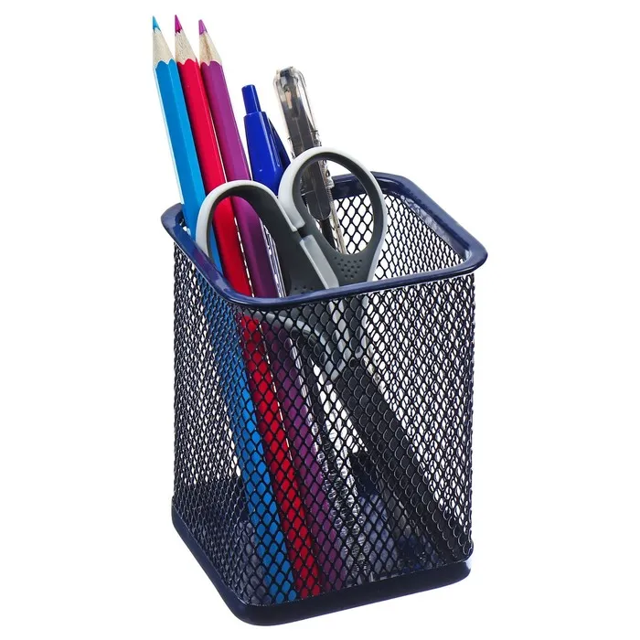 Стакан для пишущих принадлежностей, квадратный, металлическая сетка, синий — Характеристики