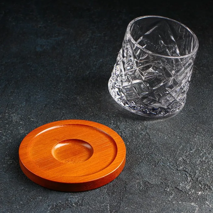 Стакан для виски «Торн», 250 мл, на деревянной подставке, стекло — Характеристики