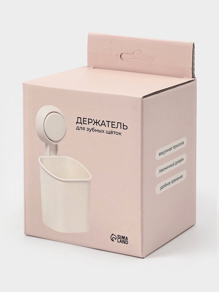 Стакан для зубных щёток на вакуумной присоске, пластик, 9×7.7×19 см, белый — Характеристики
